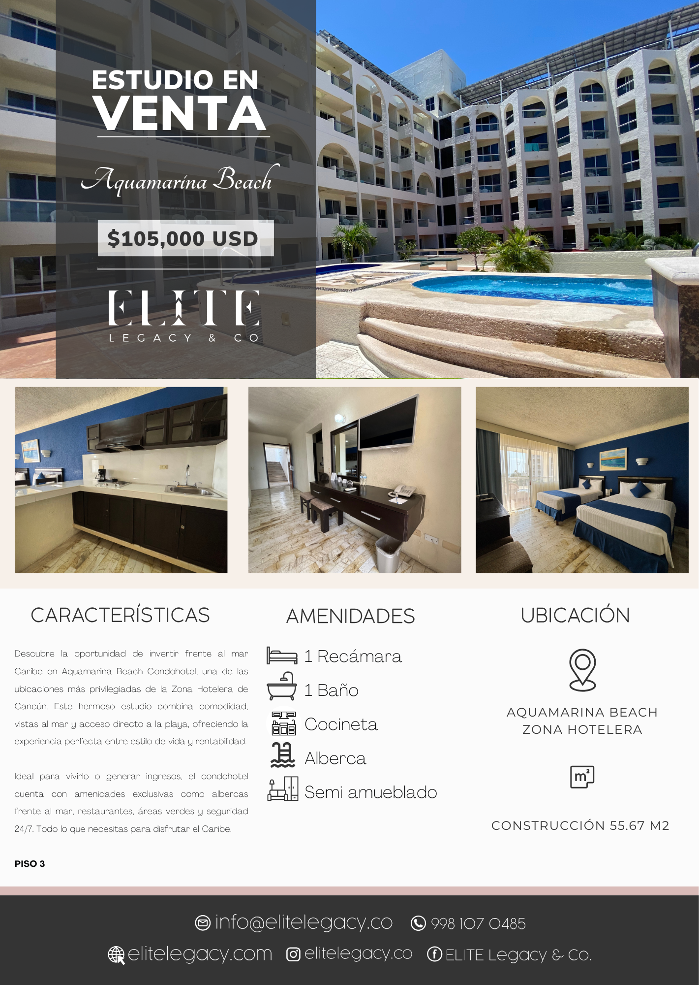 Descubre la oportunidad de invertir frente al mar Caribe en Aquamarina Beach Condohotel, una de las ubicaciones más privilegiadas de la Zona Hotelera de Cancún. Este hermoso estudio combina comodidad, vistas al mar y acceso directo a la playa, ofreciendo la experiencia perfecta entre estilo de vida y rentabilidad.