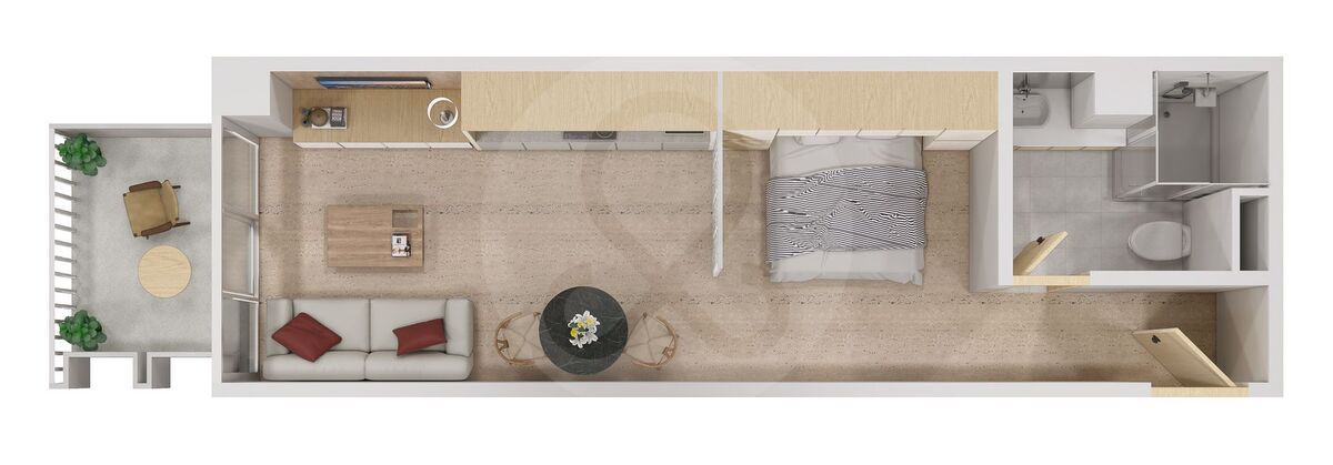 The studios have been designed to make the most of every square meter, offering compact, modern, and functional spaces.