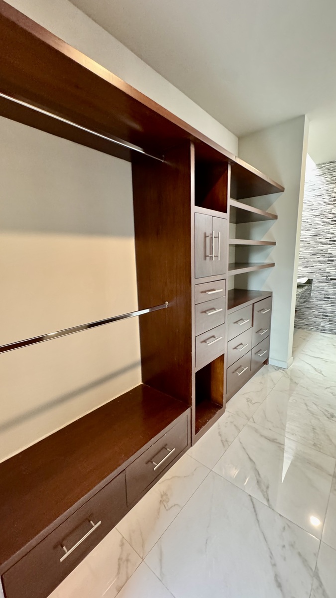 The master bedroom has a large walk-in closet and a full bathroom, the other 2 bedrooms have closets and share a bathroom.