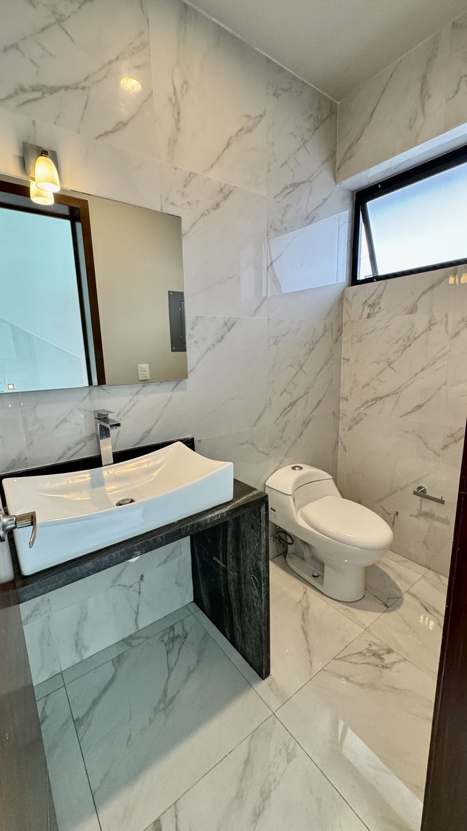 La recámara principal es con amplio vestidor y baño completo las otras 2 recámaras tienen clóset y comparten baño.
