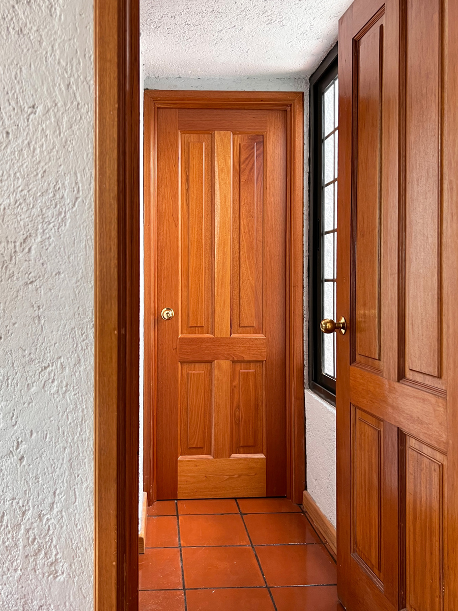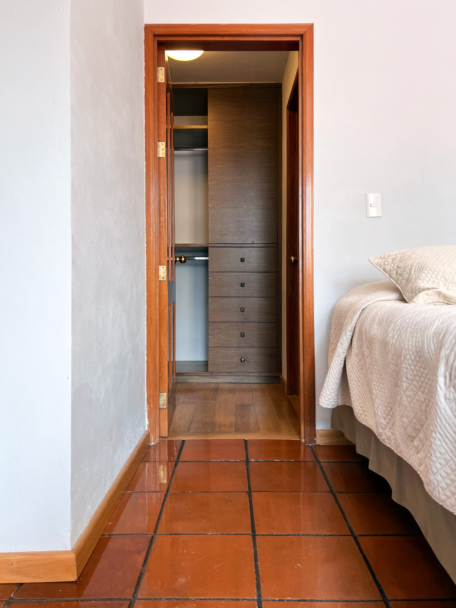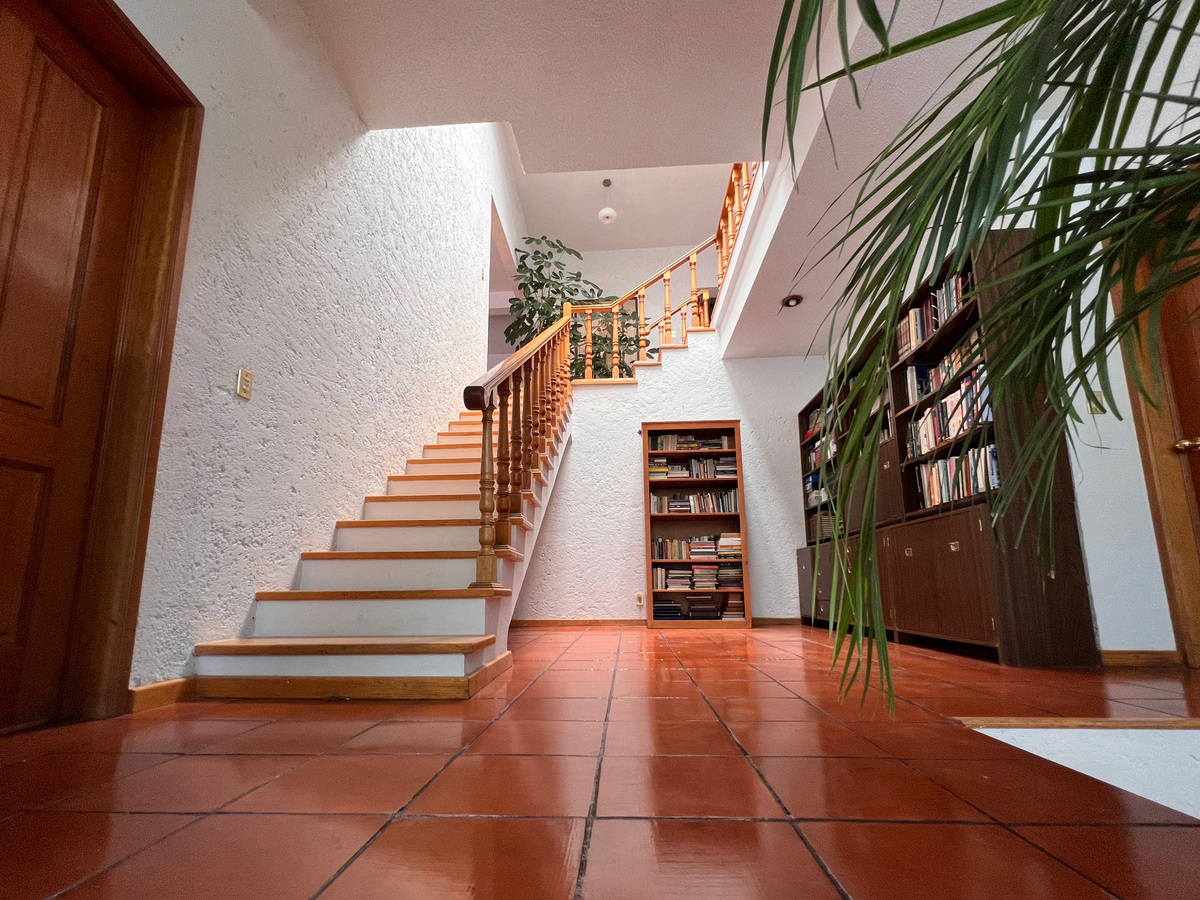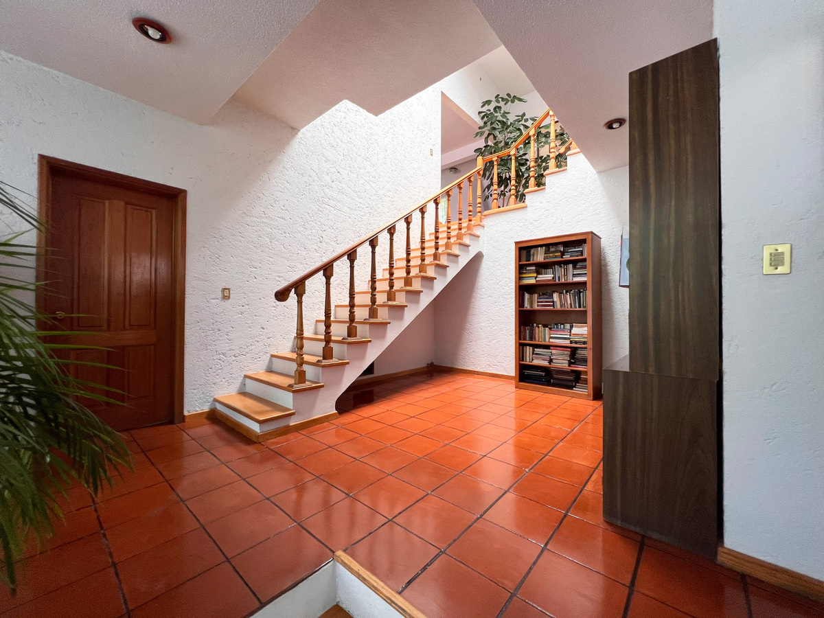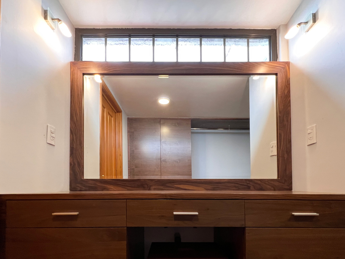 Un piso abajo están 2 recámaras, la principal y una de las secundarias, ambas con clóset vestidor y su baño completo. En este nivel está un área abierta tipo biblioteca.