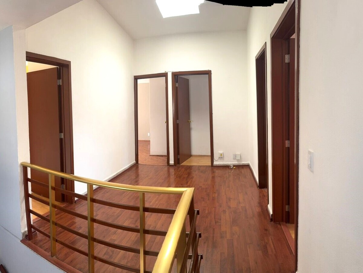 Upper floor: 4 good-sized bedrooms, master bedroom with closet and bathroom, and the other 3 bedrooms with closets that share a bathroom.Excelente casa, impecable en calle cerrada con vigilancia 24 hrs. en magnifica ubicación.