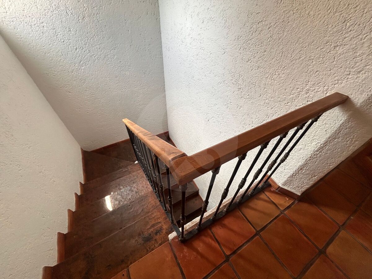 Enjoy spacious areas with a living room and dining room that open onto a beautiful terrace with a green view, high ceilings, and wooden beams that add warmth and character. The kitchen is large and functional, and it has a guest bathroom. On the upper floor, there are two bedrooms and two full bathrooms, as well as a laundry area.