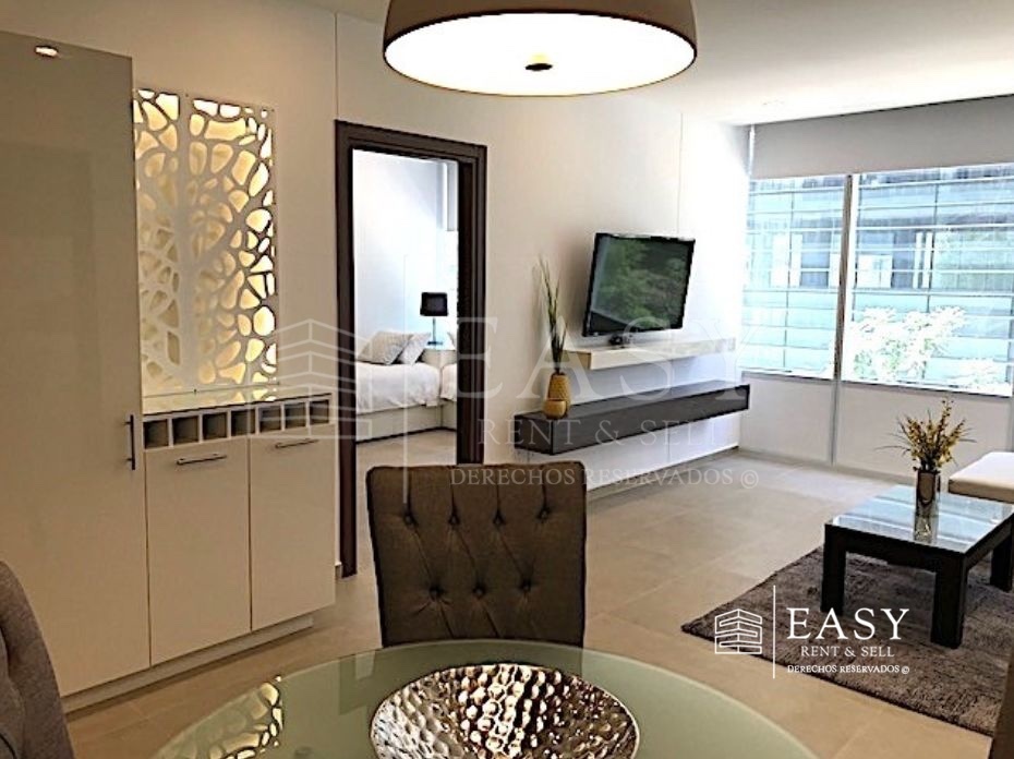 (incluye un sofá-cama matrimonial), comedor, cocina abierta, cuarto de lavado y 2 cajones de estacionamiento.