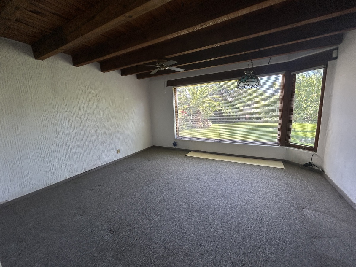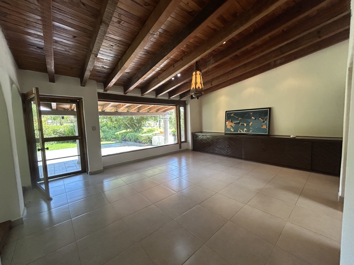 Cuenta con un amplio y grande jardín justo frente al campo de golf con acceso directo al mismo. Donde toda la casa puede disfrutar de una panorámica Vista inigualable. Atractivo para buen proyecto de Inversion.