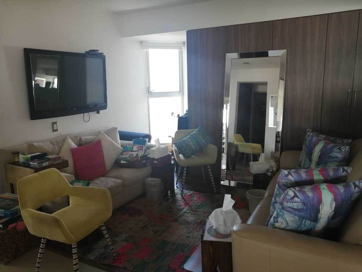 Su sala-comedor es muy espaciosa, con terraza, dos baños completos, y una recámara principal con walk-in clóset, aire acondicionado y balcón.