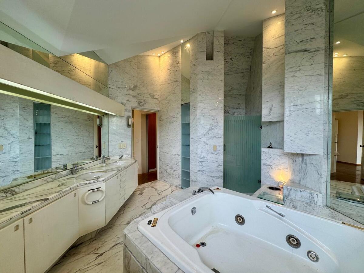 Master bedroom with a spacious two-level walk-in closet, full bathroom with jacuzzi and high-pressure shower