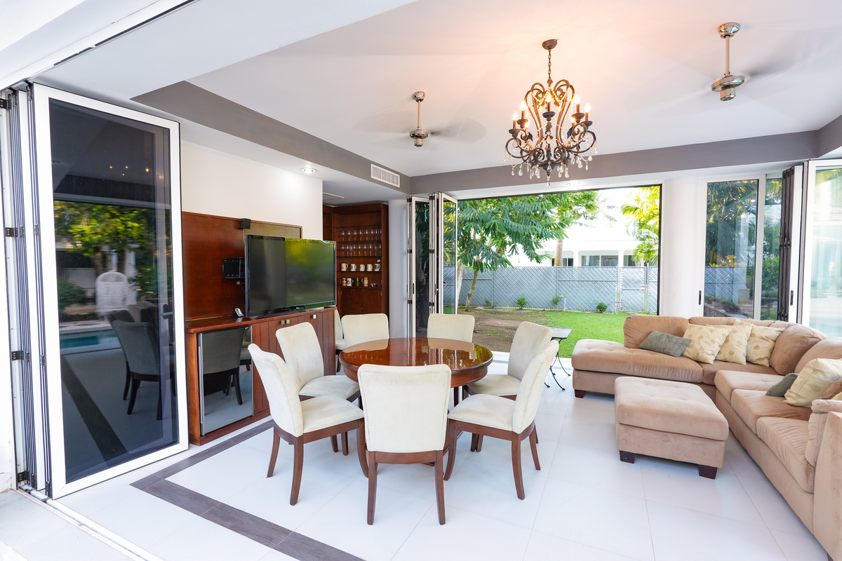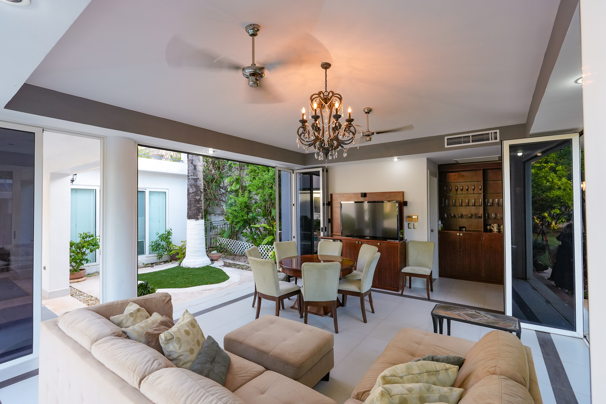 • Private bar type Family Room with sliding doors that integrate into the garden and pool