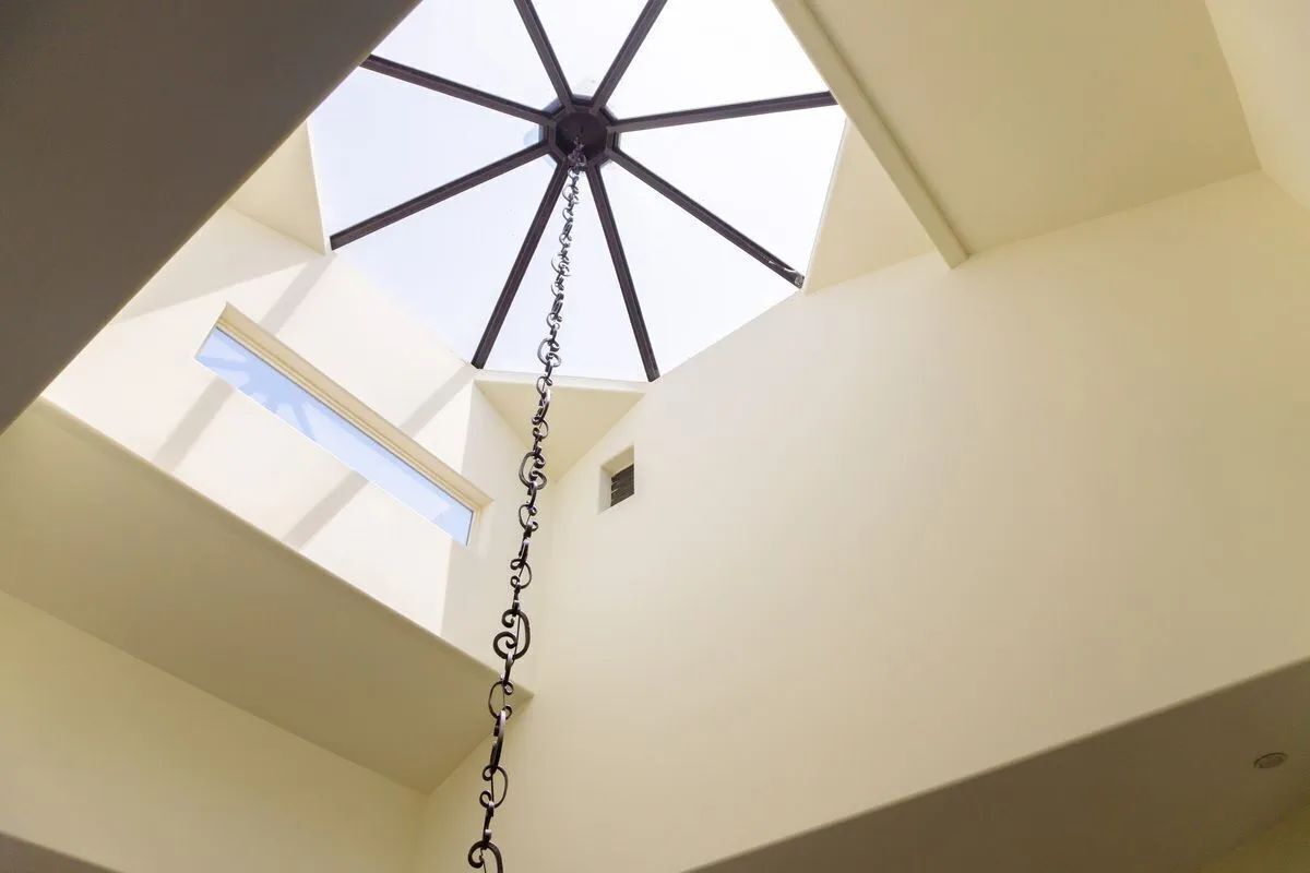 Additionally, the property features a study that can be used as an office, a central chandelier that adds a touch of elegance, and a double-height area that creates a sense of spaciousness.