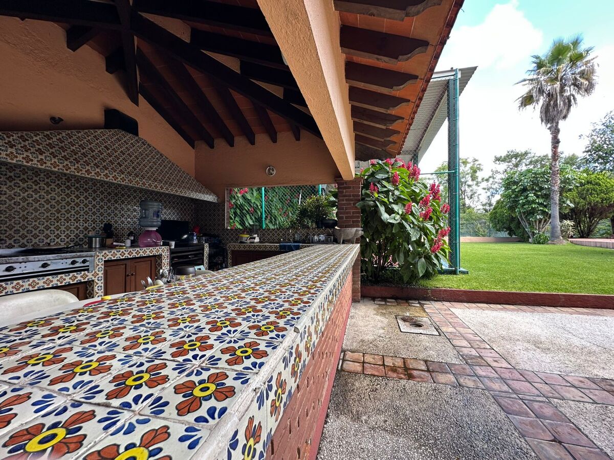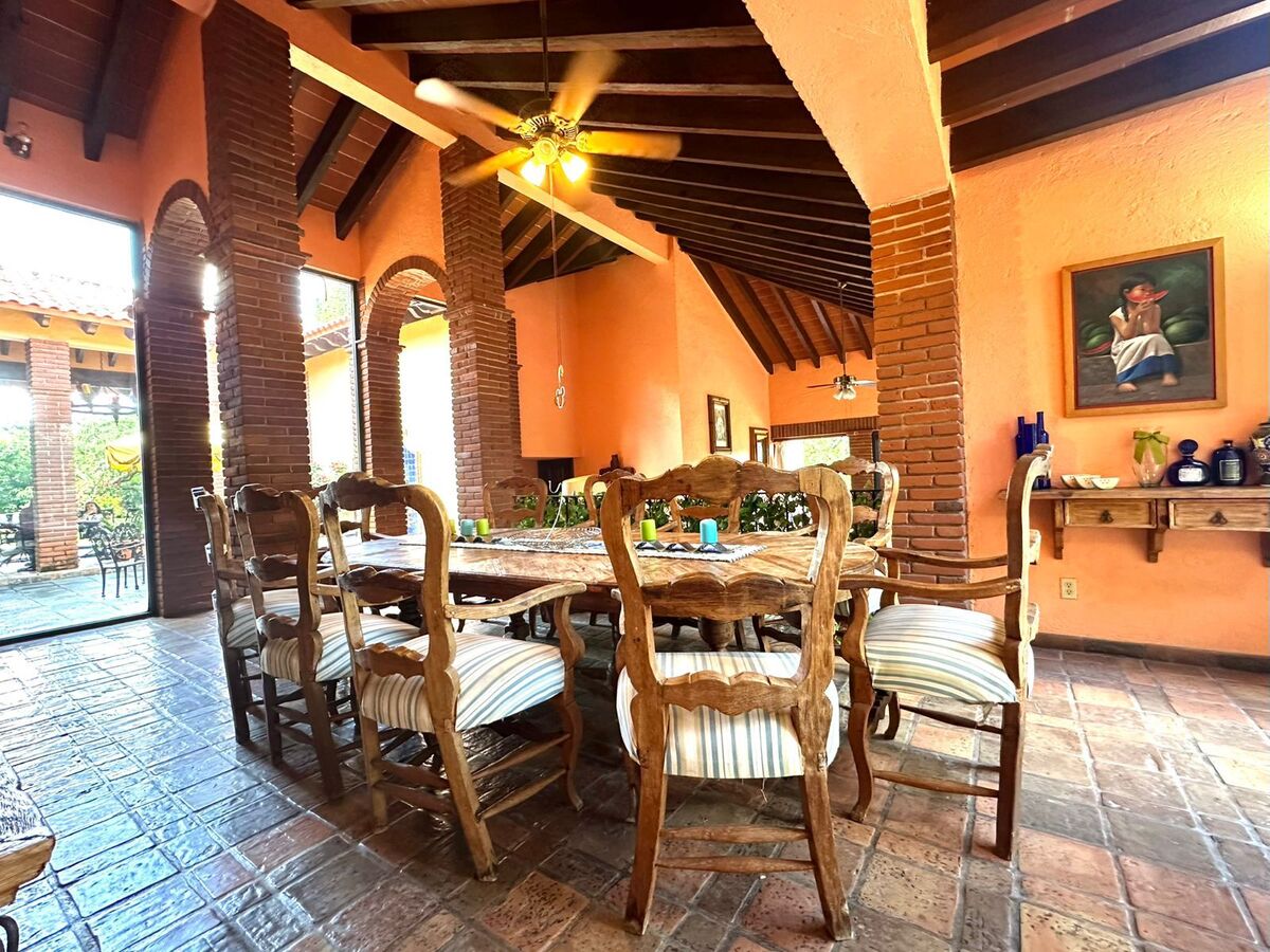 En la zona social, una amplia sala y un comedor con acabados tradicionales brindan el ambiente perfecto para recibir visitas o disfrutar en familia. Cuenta con dos medios baños para invitados y una terraza con vista al jardín, ideal para reuniones al aire libre. Además, una palapa equipada con asadores complementa el espacio exterior, haciendo de esta propiedad un lugar excepcional para eventos sociales.