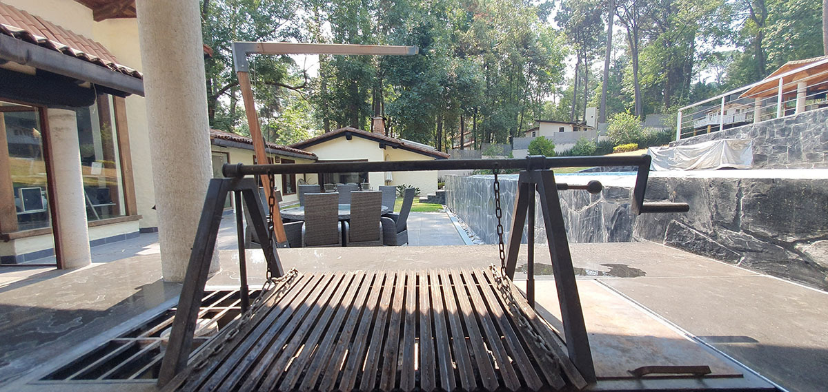La terraza tiene un asador techado al lado del jacuzzi que aprovecha ese techo y también está al lado de la alberca que tiene mucho sol. Hay un jardín más amplio en el área contigua y hasta el fondo otra terraza techada por si quieres seguir la fiesta pero dejar dormir a la familia.