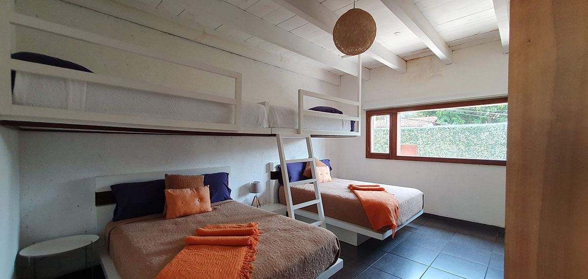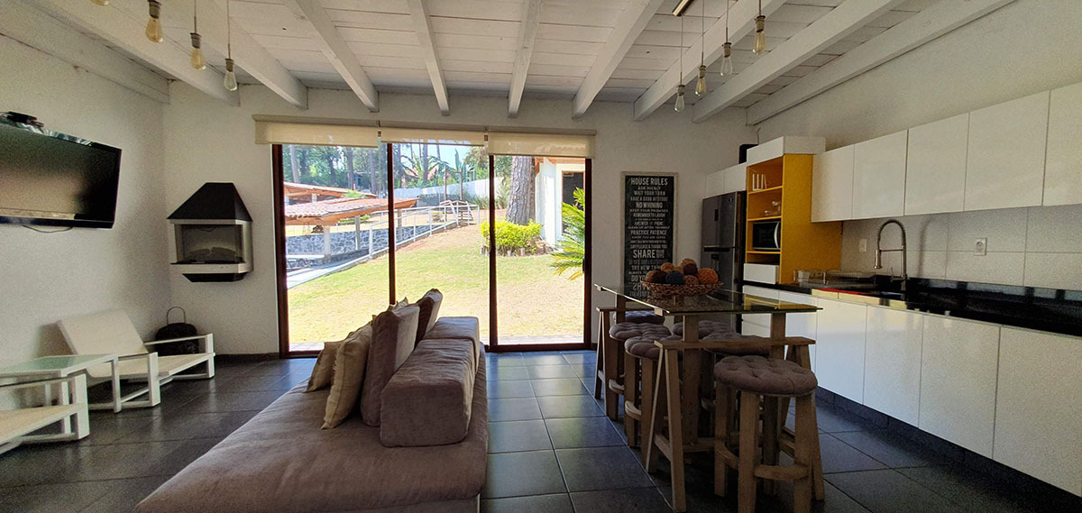 For guests, there is a separate bungalow with three more bedrooms, two downstairs and the master with a terrace and a wide view of the garden on the upper part. Very enjoyable and with several parking spaces even for visitors. It is on one of the main streets of Avándaro but is quiet. You can walk to Fresko and the commercial area with its shops and restaurants, so both you and your kids can feel safe going for a walk there and returning without a car. That area has a lot of added value, it is very sought after.