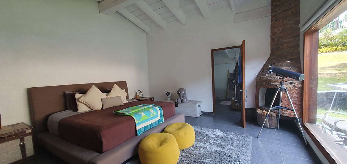 On a single floor, the main house has three complete bedrooms, and the master bedroom has a good bathroom, tub, and a view of the social area through a large window, and of course, its fireplace to give warmth to the total Valle home.