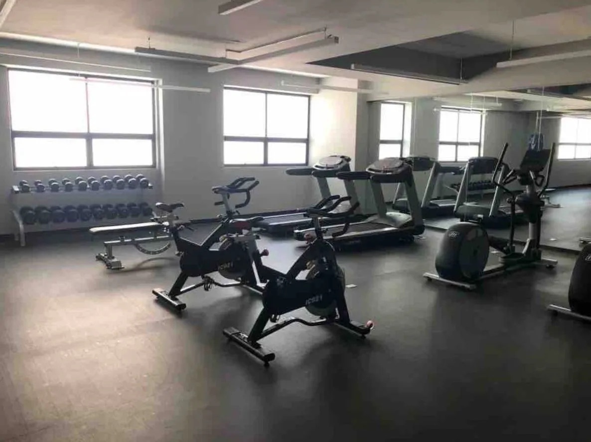 Highlighted amenities: Private terrace with tree view, swimming pool, rooftop gym with panoramic views