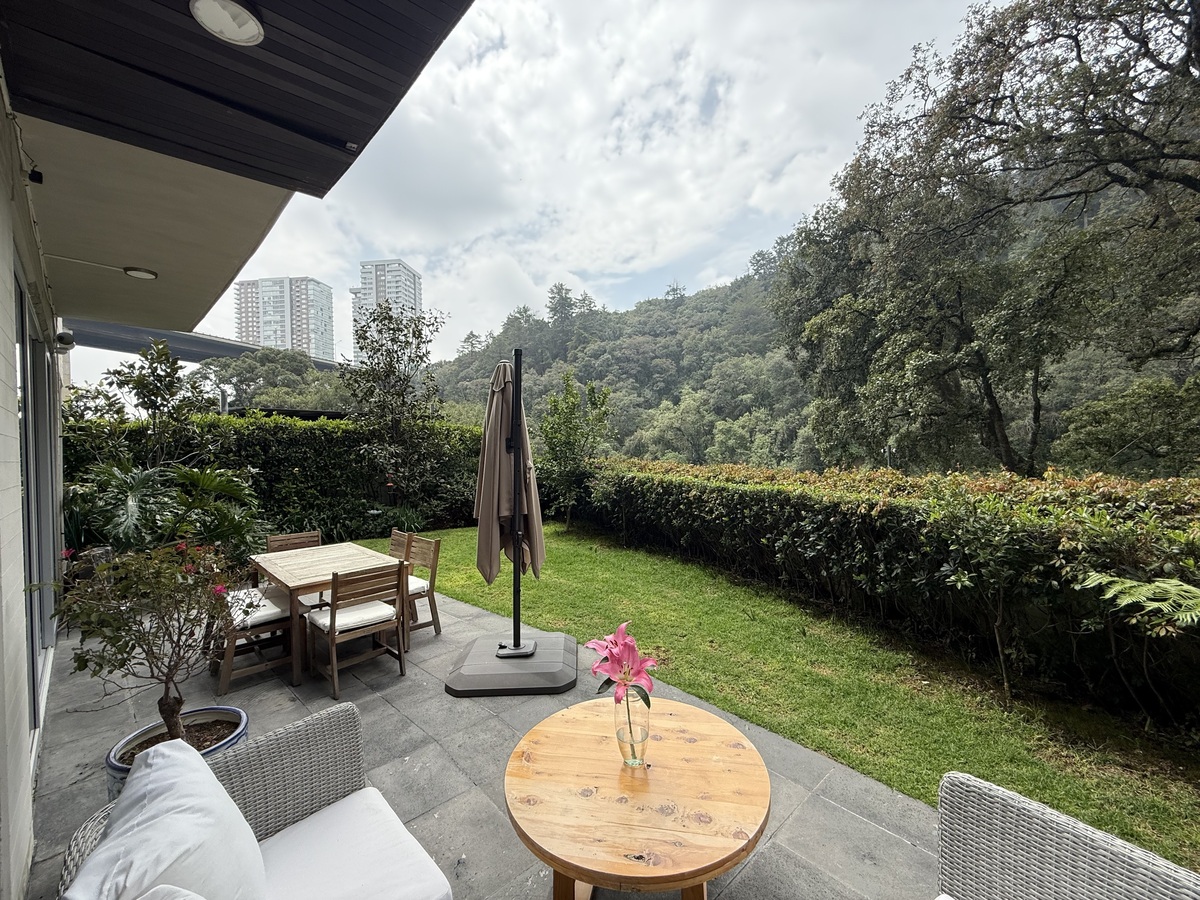 Descubre la elegancia y amplitud de este magnífico departamento de 350 m², ubicado en el prestigiado desarrollo PenGarden dentro del edificio Cañada, una de las zonas más exclusivas y verdes de Cumbres de Santa Fe. Rodeado de naturaleza y con una vista directa a la cañada, este hogar ofrece un estilo de vida sofisticado y sereno.