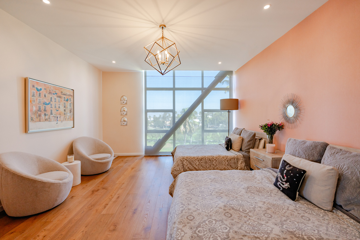 La recámara principal es un verdadero refugio, con ventanales que enmarcan la vista al campo de golf, baño completo y walk-in closet. Además, cuenta con dos recámaras secundarias, cada una con baño privado y walk-in closet.