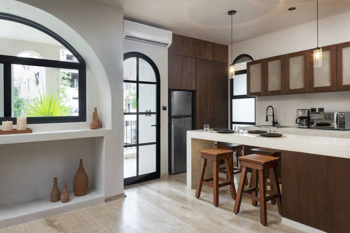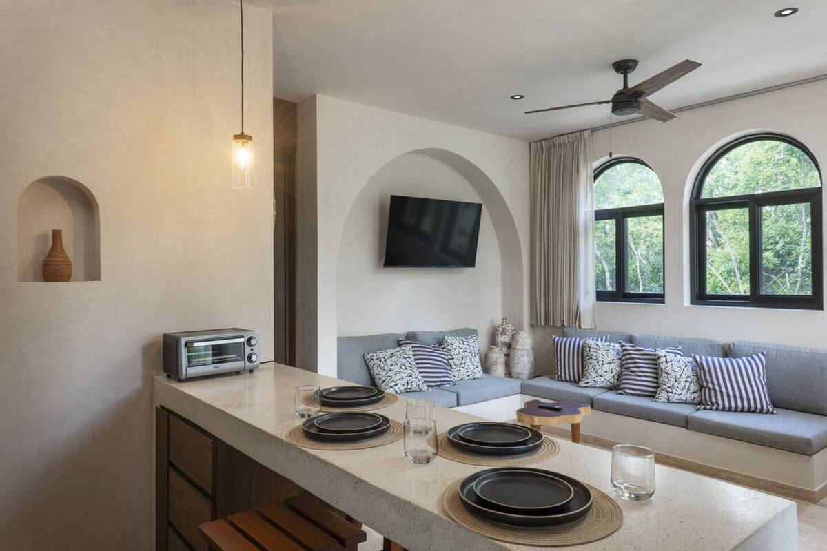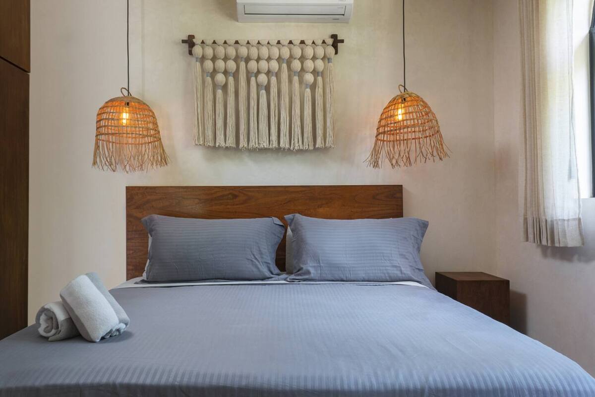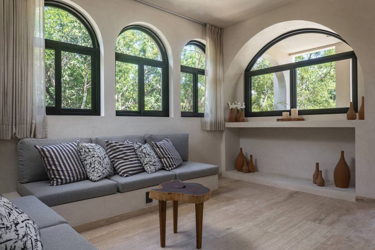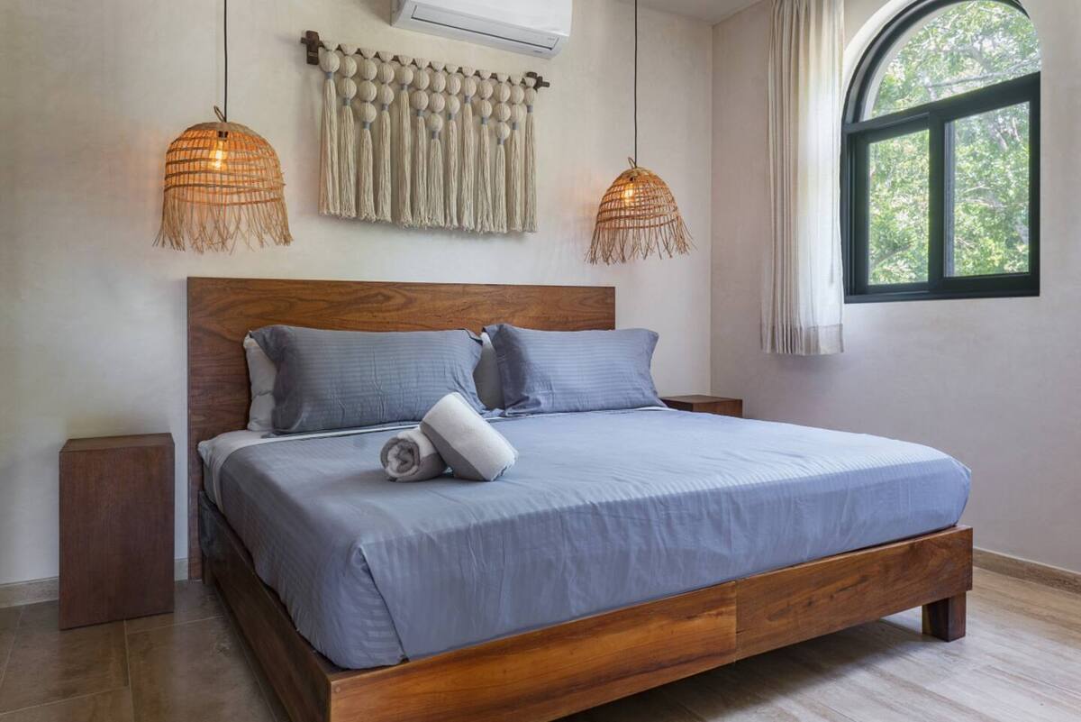 The main bedroom combines comfort and privacy, featuring a closet and full bathroom. High-end finishes, natural materials, and neutral tones reflect Tulum’s authentic style, while large windows fill the interiors with natural light. Every detail has been carefully designed to offer a relaxed, elegant, and functional living experience.
