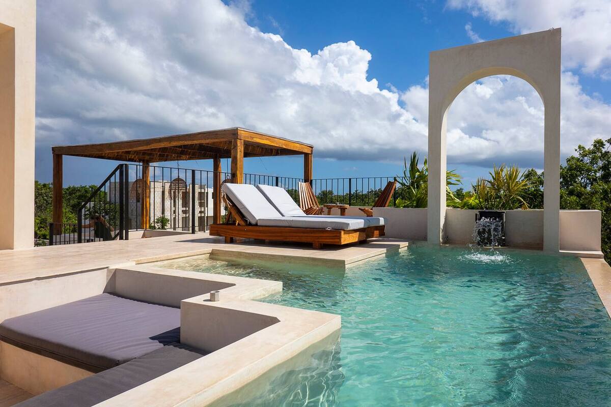 Discover the perfect balance between modern elegance and natural serenity at Torana Tulum, a boutique development located in La Veleta, one of the most exclusive and rapidly growing areas in Tulum. This 1 bedroom condo with a private pool offers a contemporary design inspired by nature, ideal for those seeking a sophisticated retreat in the Mexican Caribbean.
