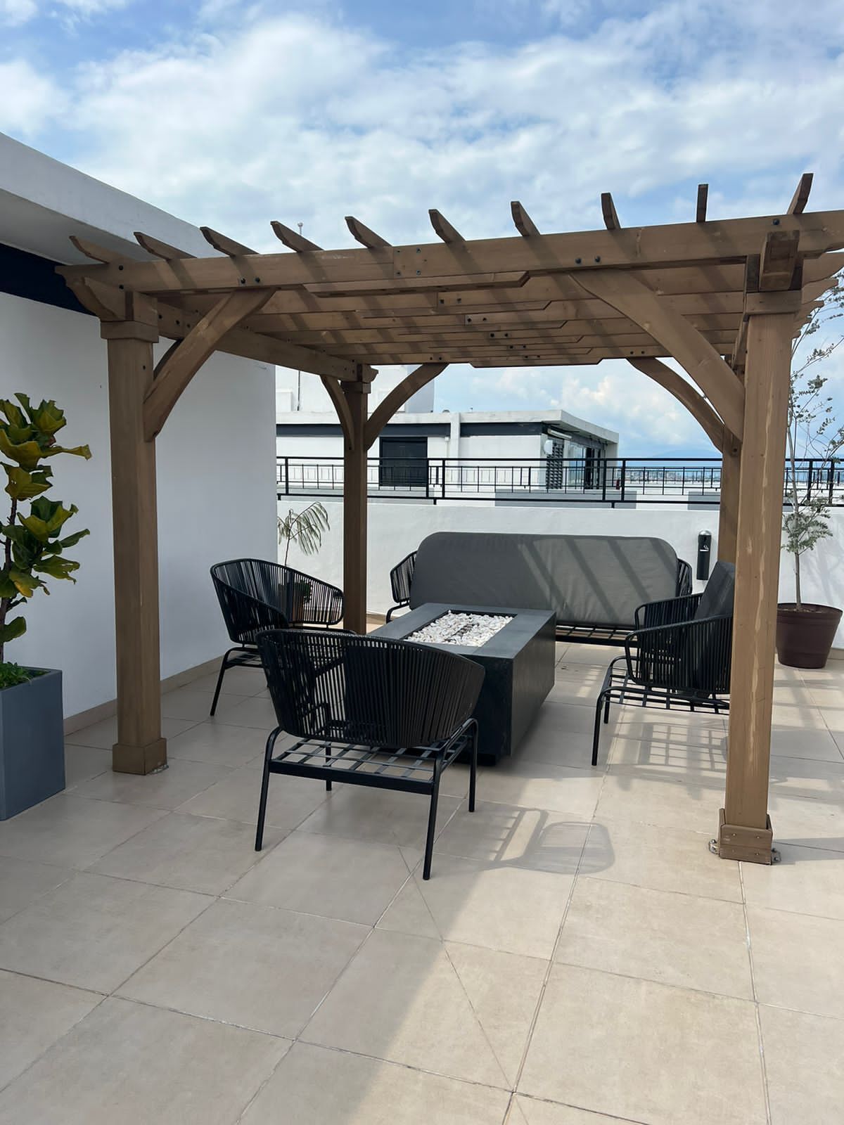 Firepit Roof with three lounges with a fire pit over 50 meters high