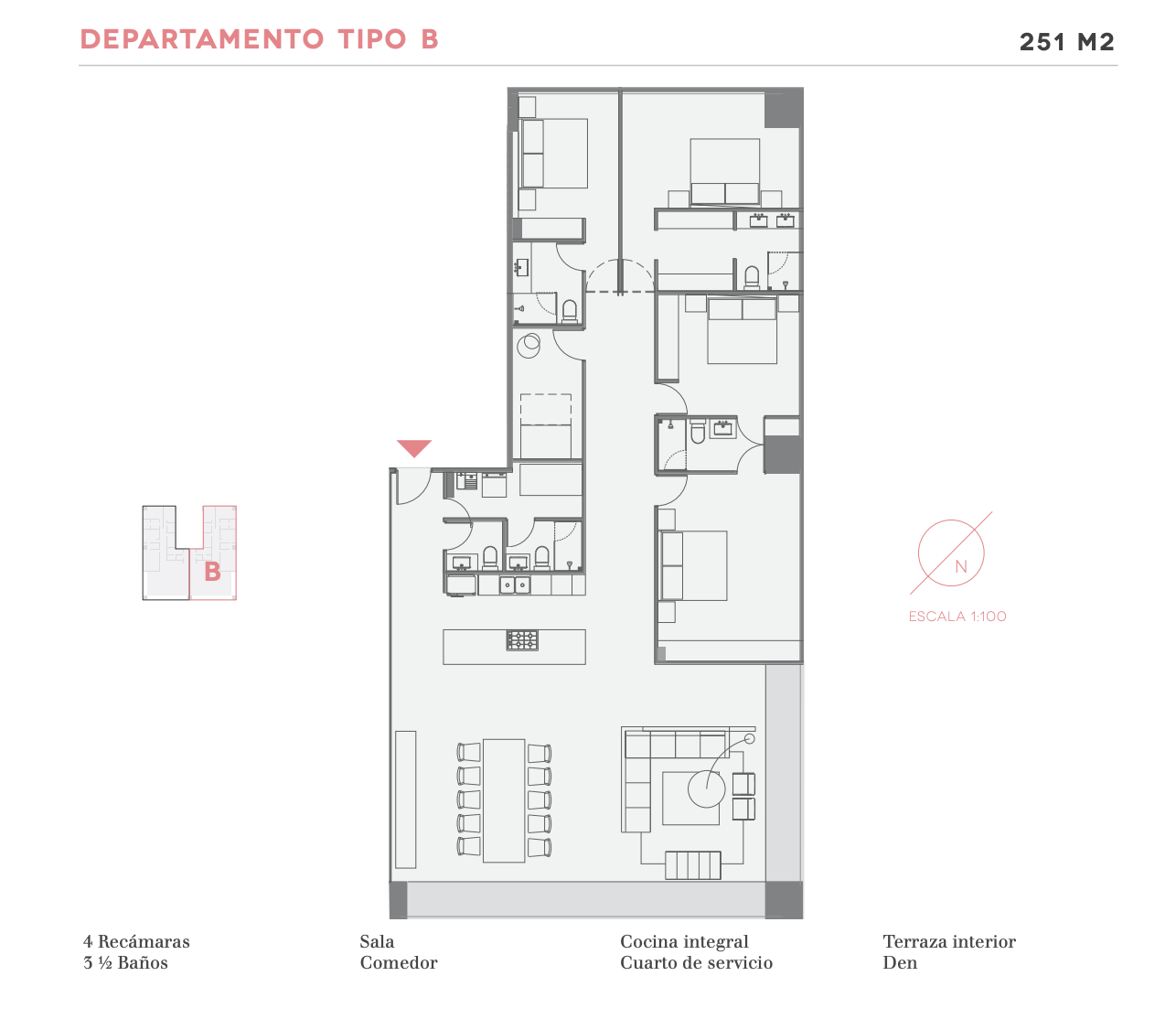 -3 Recamaras + Cuarto de servicio