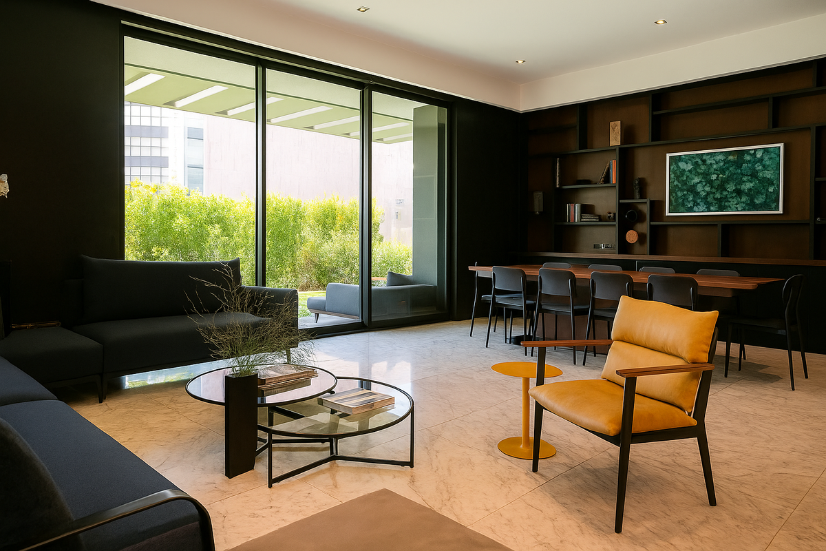 - Acceso Exclusivo: Elevador privado que desemboca en un vestíbulo con medio baño de visitas, realzado por techos de doble altura de 3.30 metros que potencian la sensación de amplitud.