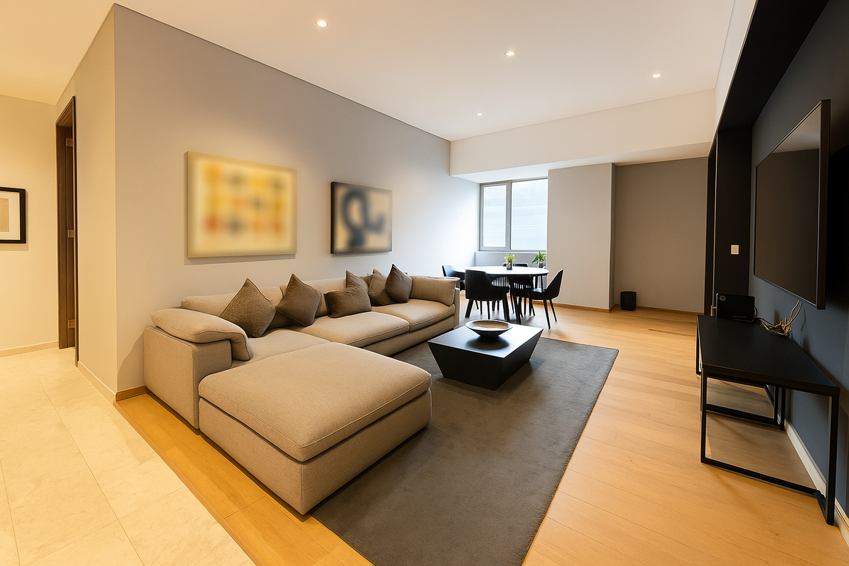 - Acabados y Tecnología: Techos de doble altura, closets de lujo, carpinterías fijas, cortinas eléctricas, iluminación LED dimerizable en todo el departamento, películas de control solar y protección UV en ventanas, y sistema de casa inteligente con domótica controlada desde celular o tablet.