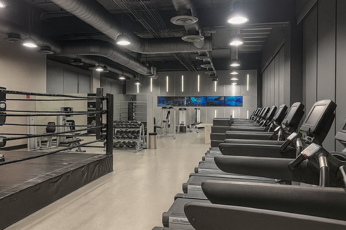 - Gimnasio completo con áreas para pilates, yoga, spinning y TRX.