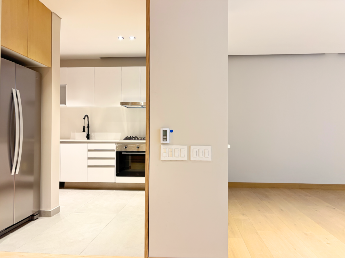 El departamento se entrega completamente terminado con acabados de lujo: luces de ambiente dimerizables, termostato, ventanas de doble cristal, closets de diseño exclusivo, baños revestidos en mármol, pisos de madera de ingeniería y un impecable trabajo de diseño interior.