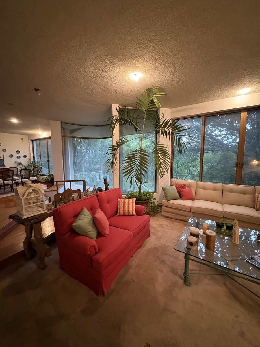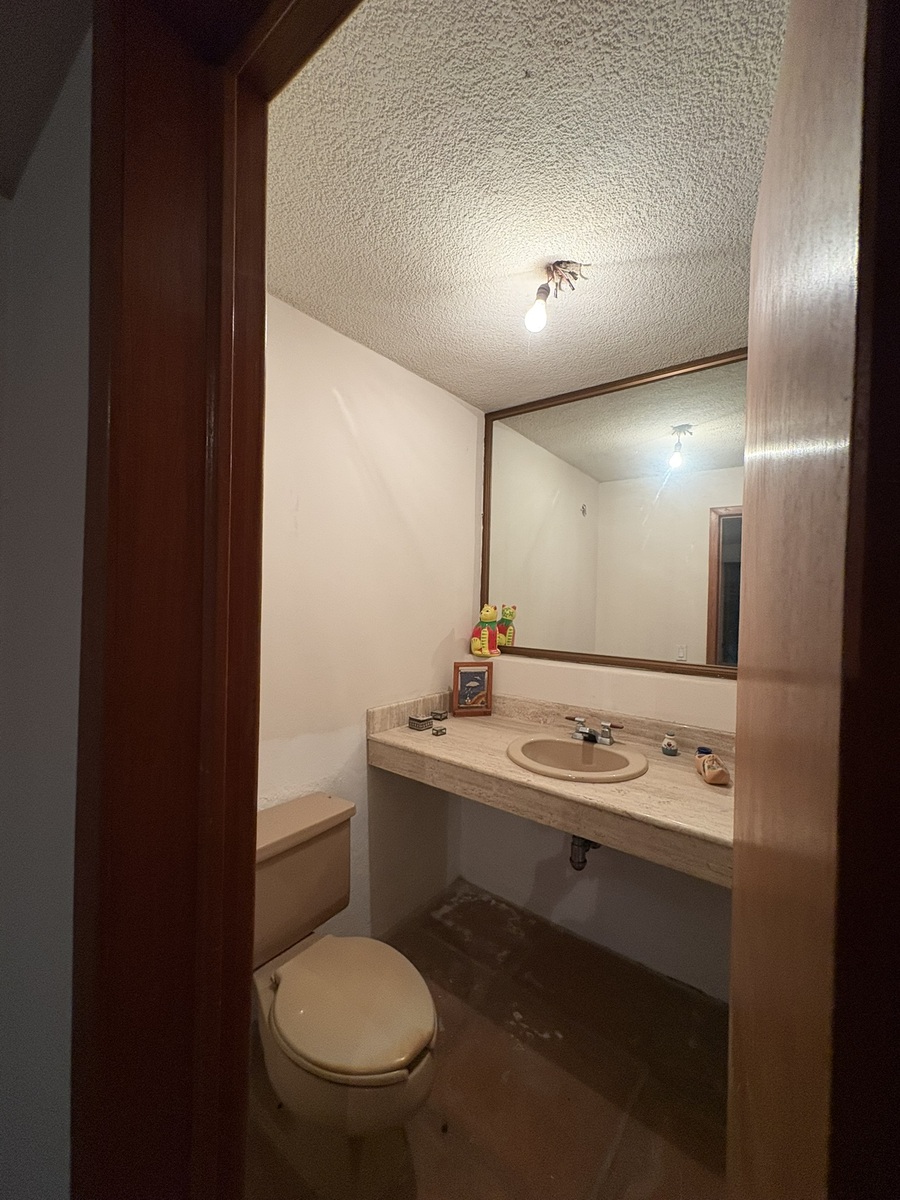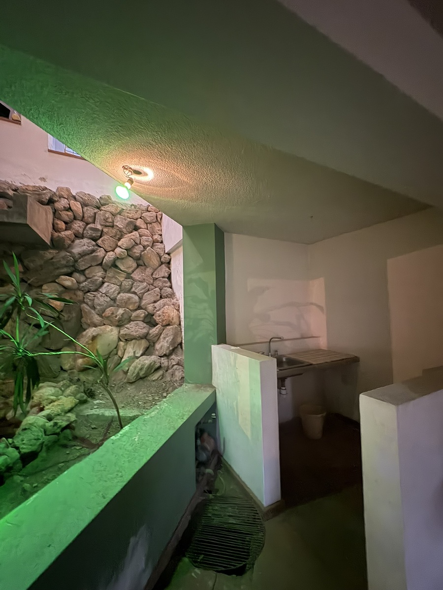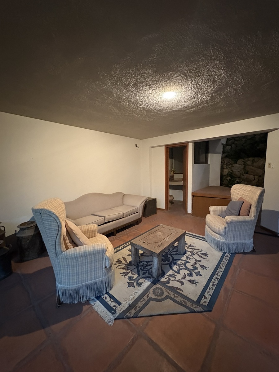 1- Tipo sótano, con medio baño, espacio como para sala de juegos, cocineta (barecito) y jardín con vista al bosque. La casa cuenta con cascada interna.
