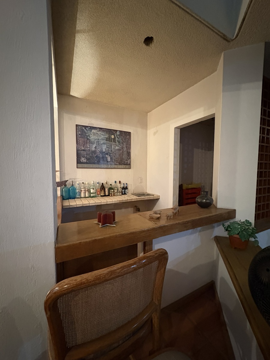 2- Cocina, alacena, antecomedor y comedor, sala , estudio, medio baño, la sala da un bar y tiene espacio para bodega de vinos, afuera cuarto y patio de servicio con lavadero