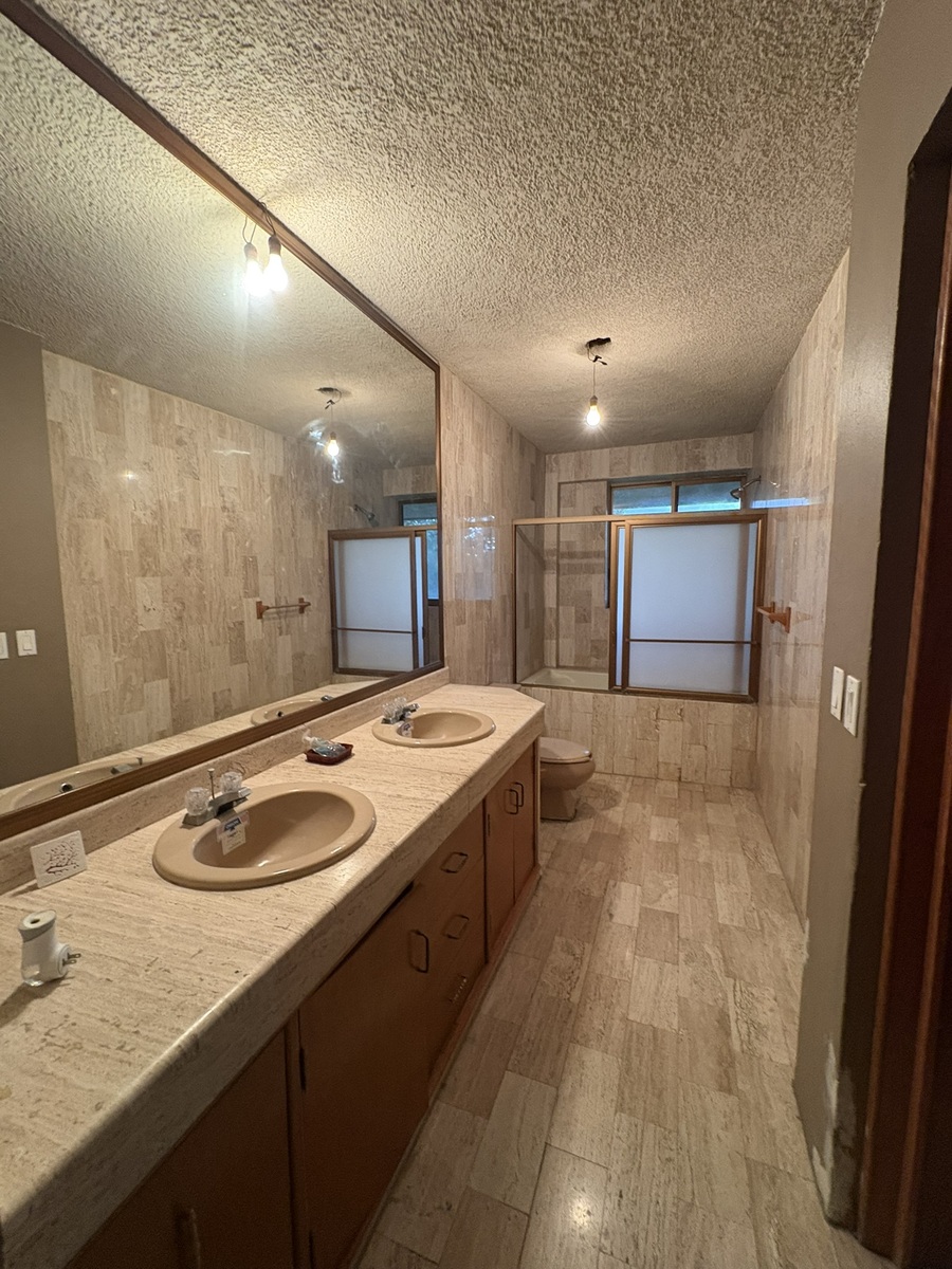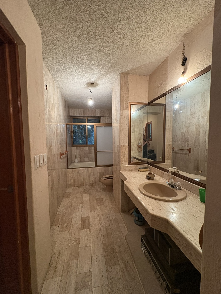 3- 4 recamaras cada una con baño, 2 se conectan, el cuarto de enfrente tiene una bodega y el otro tiene tina.