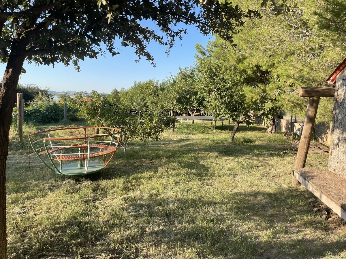 Area of fruit trees and production garden with irrigation system, chicken coop with automatic drinkers, extensive green area.