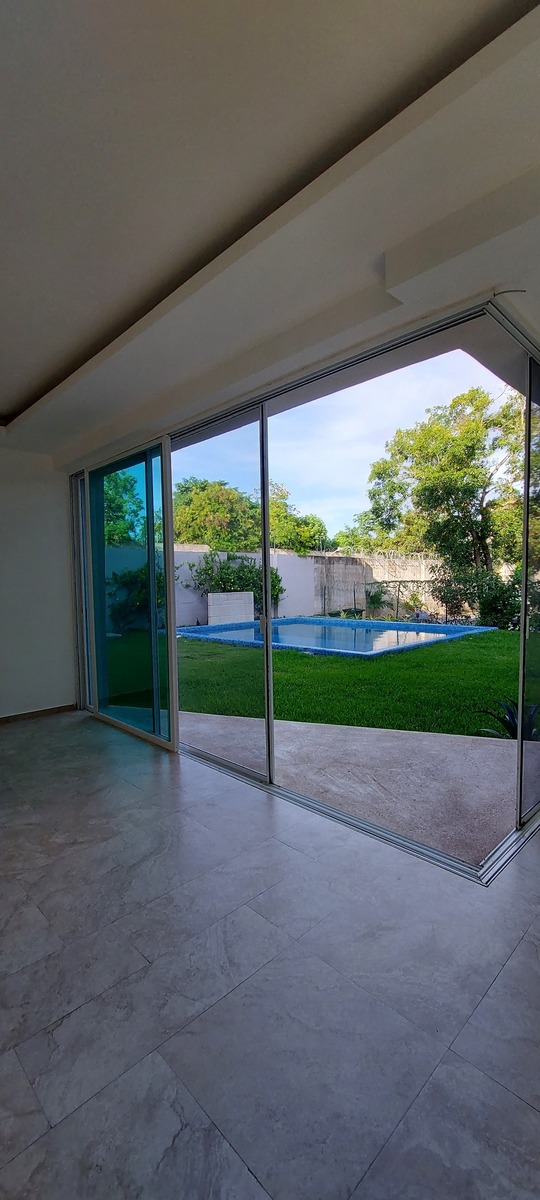 COMEDOR COM GRANDES VENTANALES CON VISTA A LA ALBERCA .