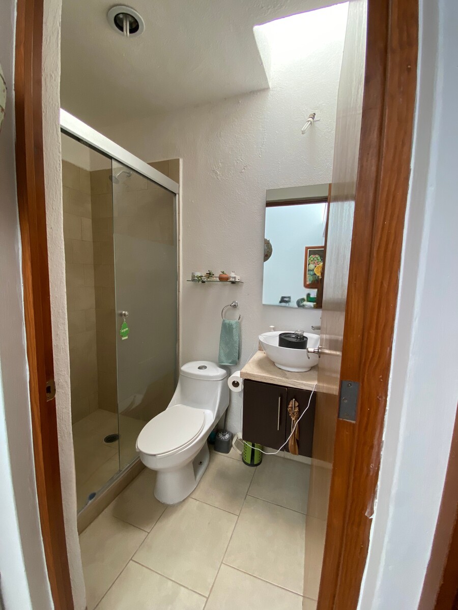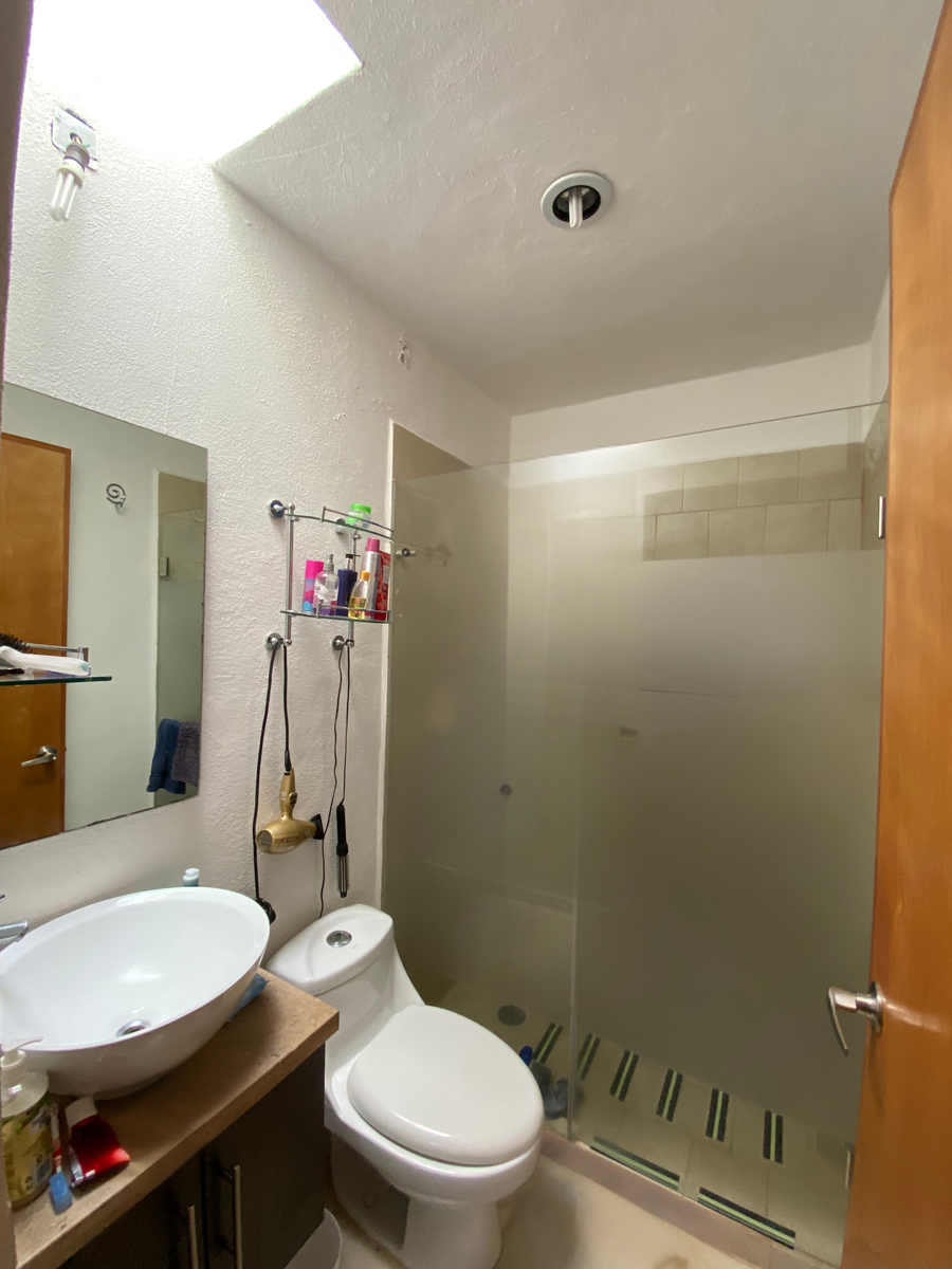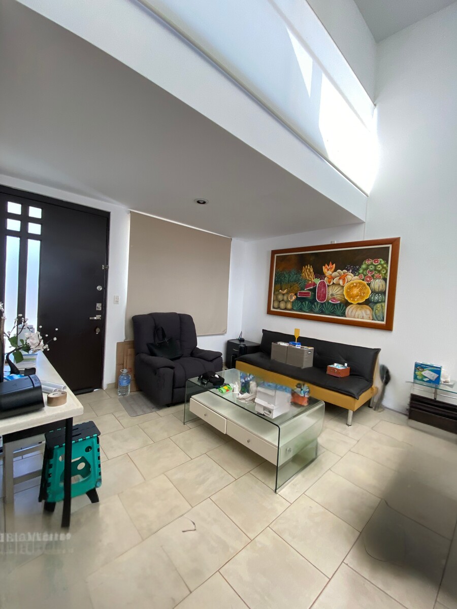La propiedad cuenta con 2 recámaras, 2 baños completos y una sala con techo de doble altura que aporta gran iluminación y sensación de amplitud.