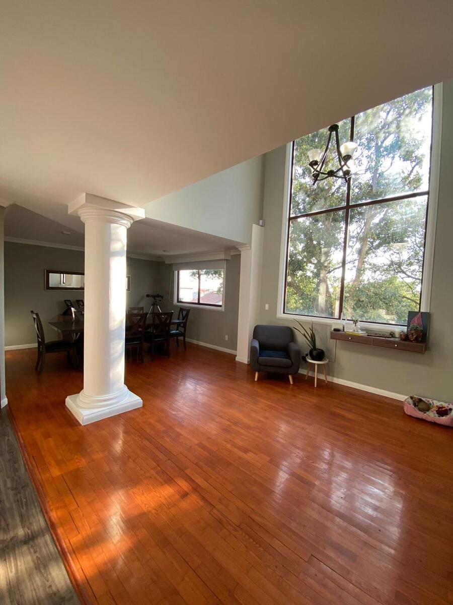 Concepto abierto en sala y comedor, iluminado por un espectacular candelabro que crea una sensación de armonía y lujo.