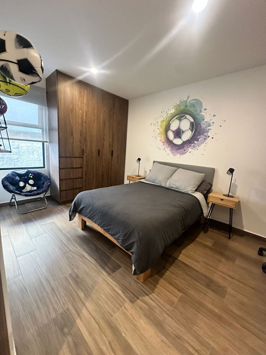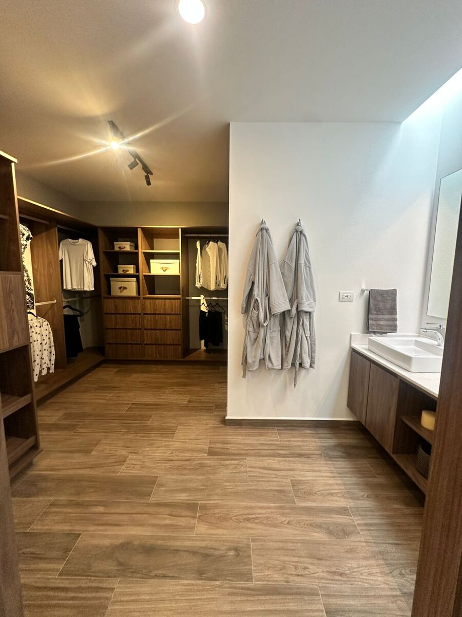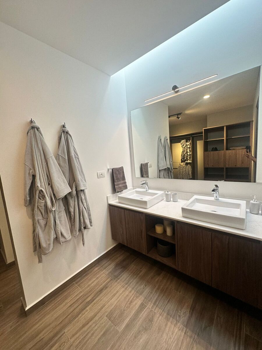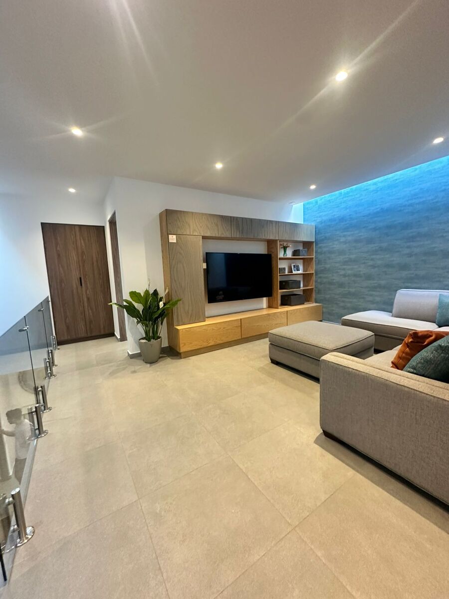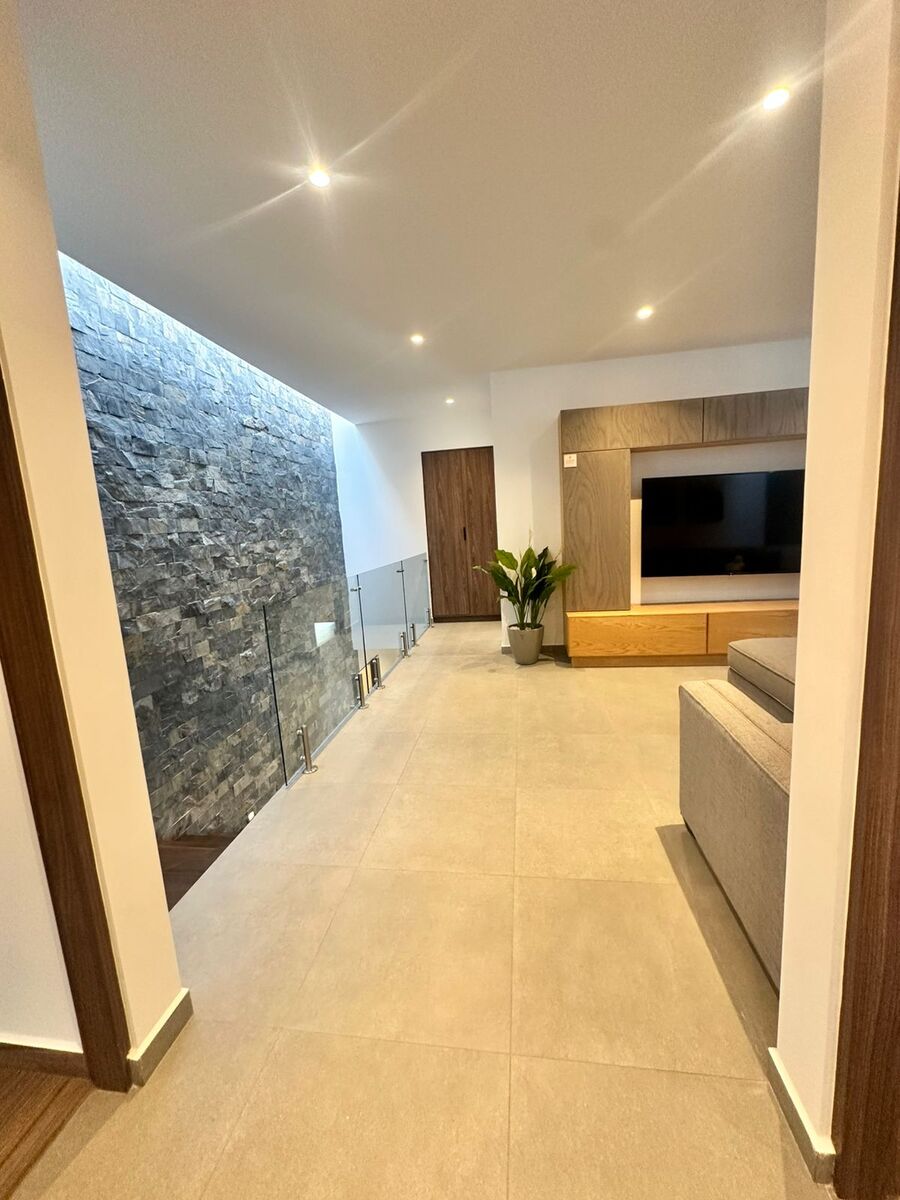 En la planta alta encontrarás una sala de TV o family room abierta, perfecta para compartir en familia. La recámara principal cuenta con balcón privado, vestidor de gran tamaño y baño completo. Además, dos recámaras secundarias amplias comparten un baño bien distribuido.