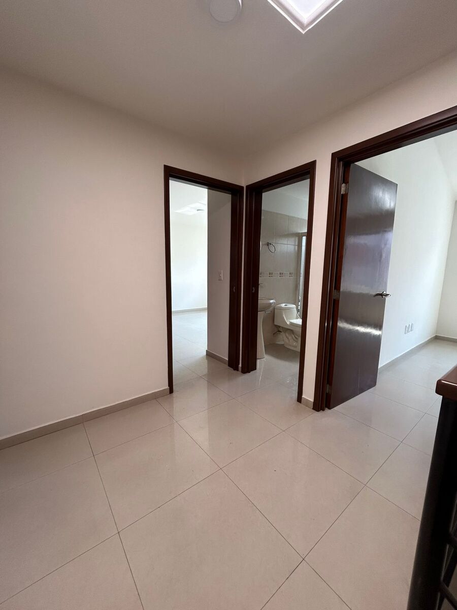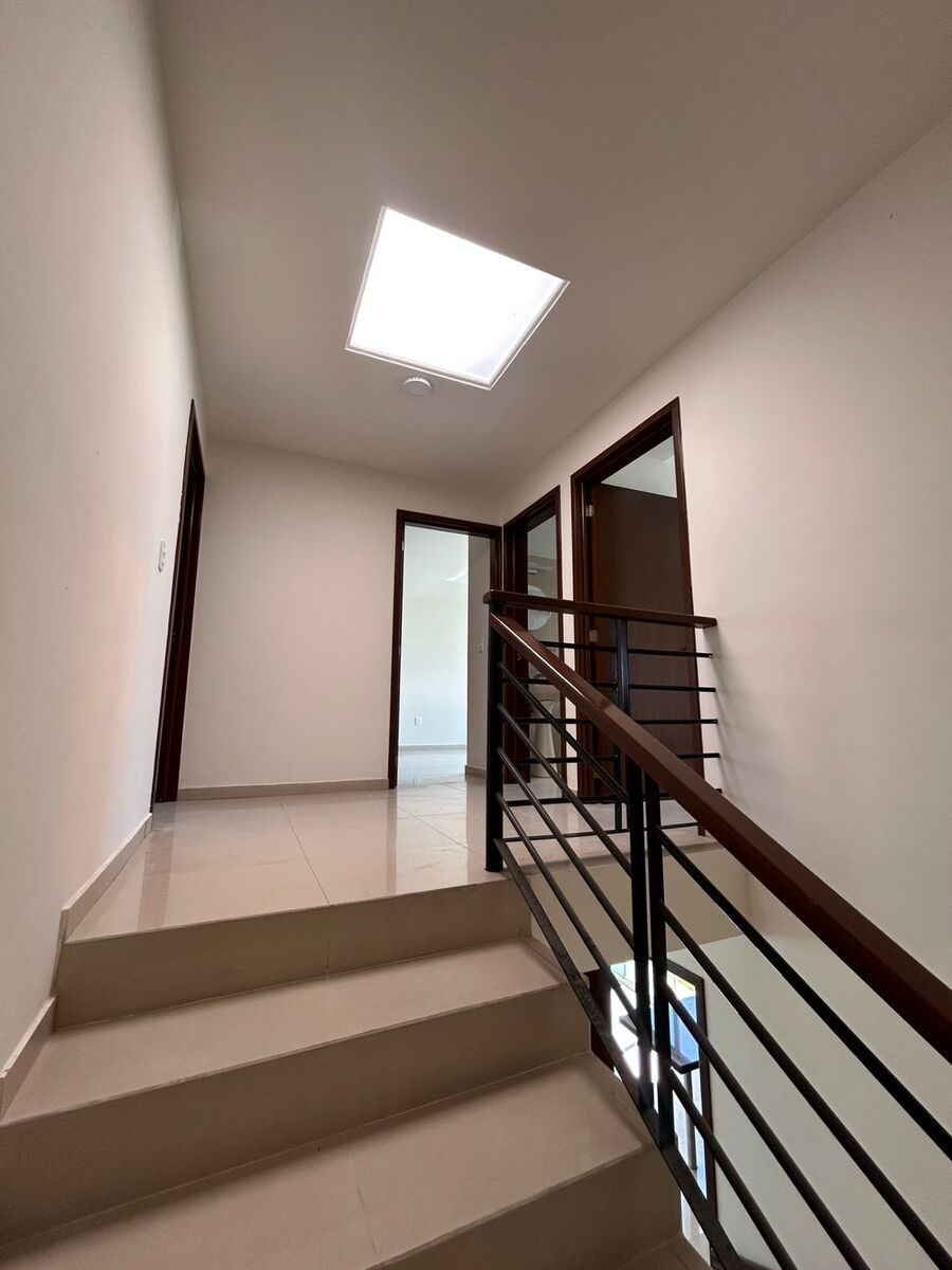 En la planta alta tenemos tres recámaras amplias. La principal cuenta con baño propio y vestidor, las secundarias cuentan con clóset y comparten un baño.