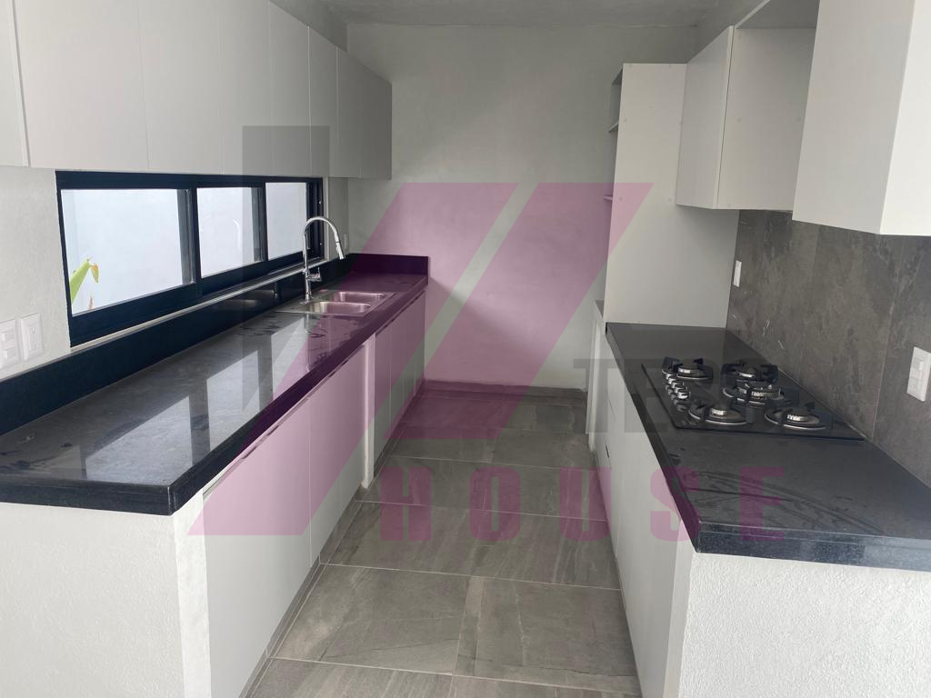 La cocina es integral y contará con barra cubiertas con granito además en planta baja tendrá medio baño para visitas.