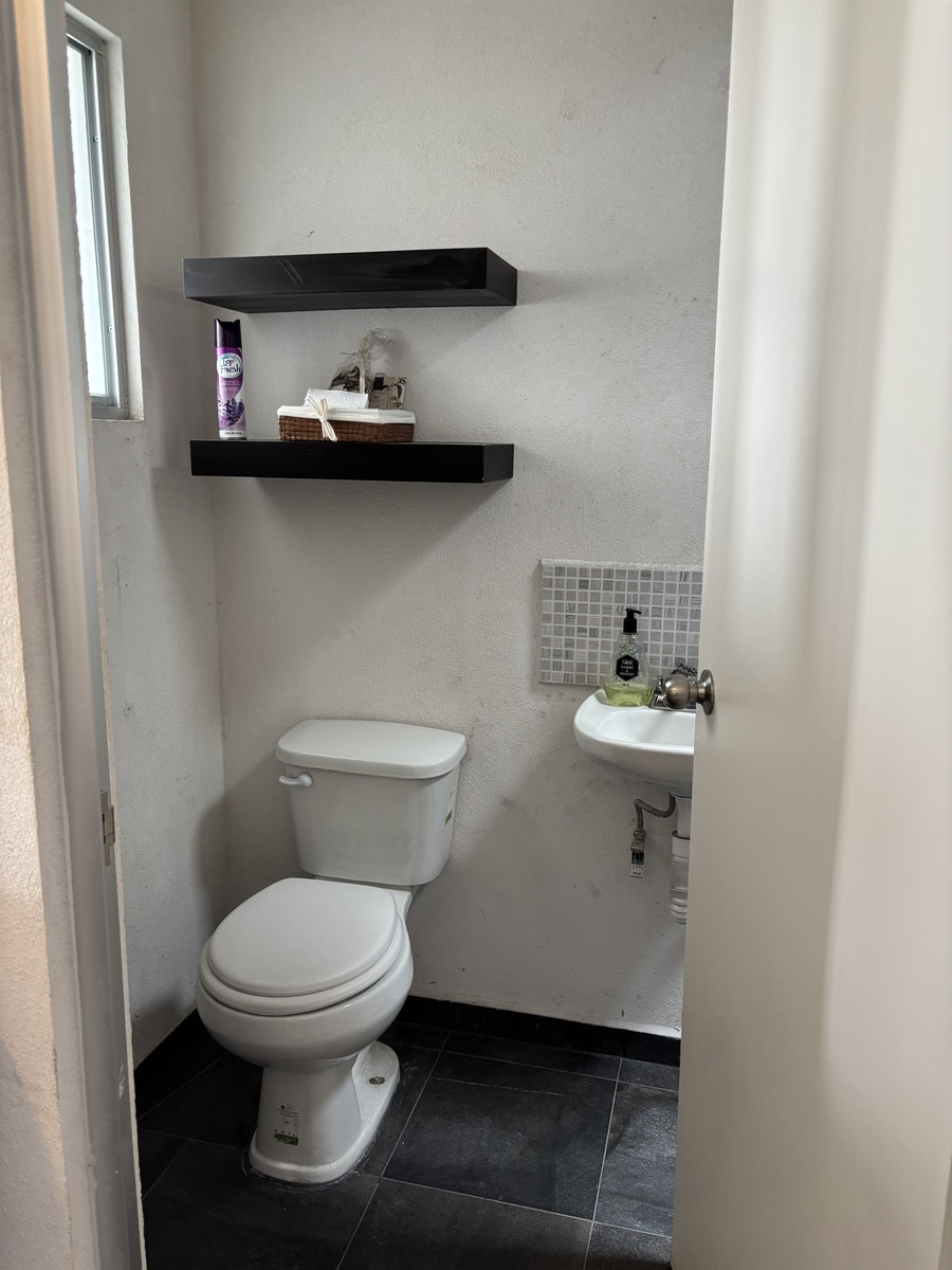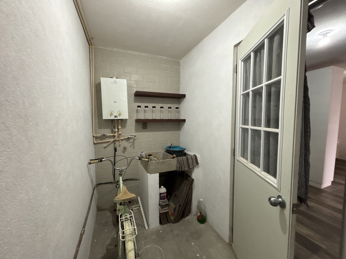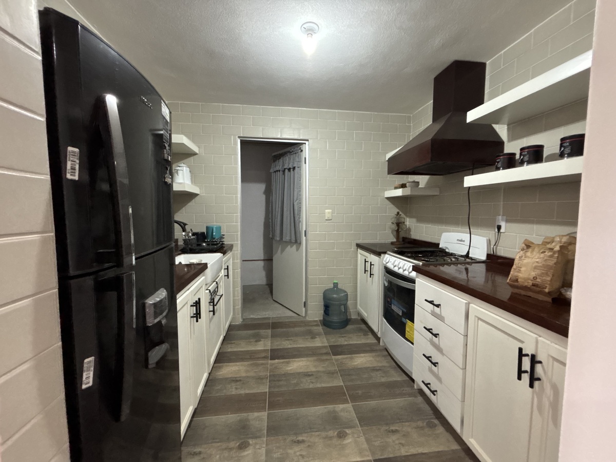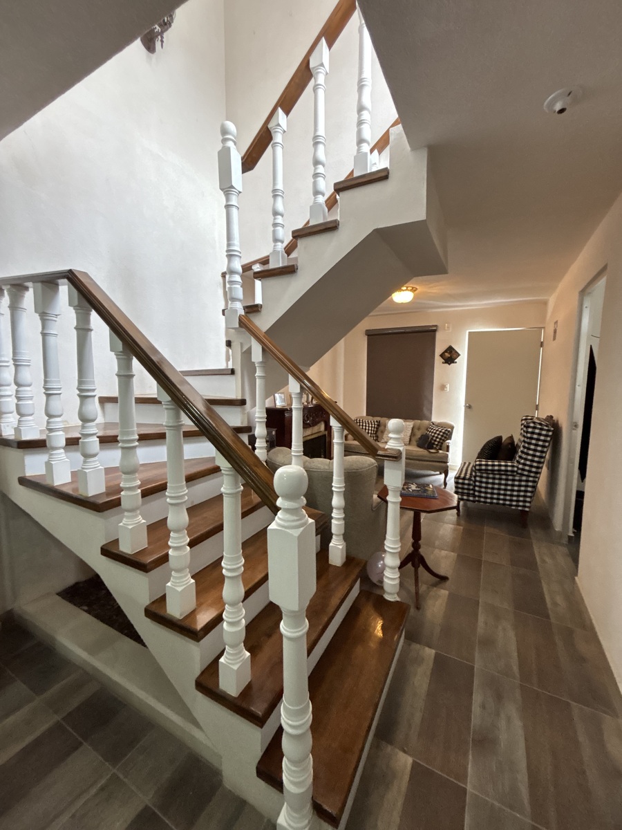 Planta baja: sala, comedor, estudio o habitación, baño completo, cocina integral, área de lavado, estacionamiento dos autos