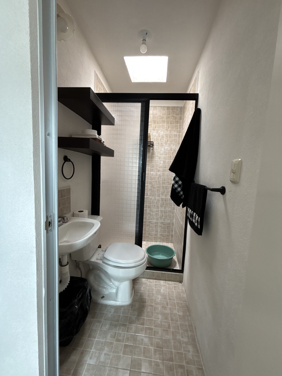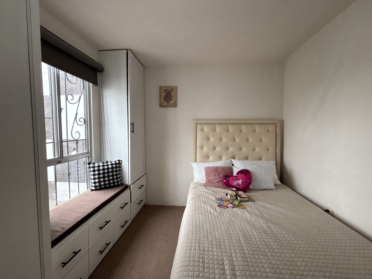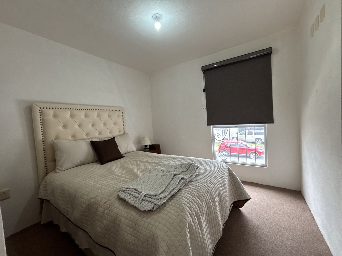 Planta alta: Recámara principal con baño, dos recámaras secundarias con clóset y comparten un baño completo. Roof garden.
