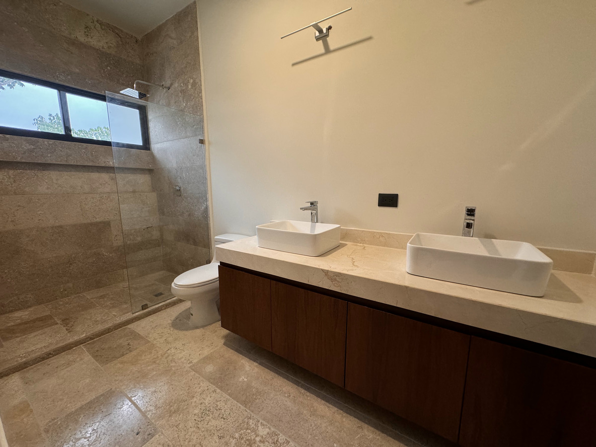 • Baños con mesetas de mármol “crema marfil”