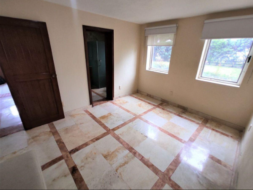Recamara principal con closet, estudio con vista al jardín, baño completo con walking closet