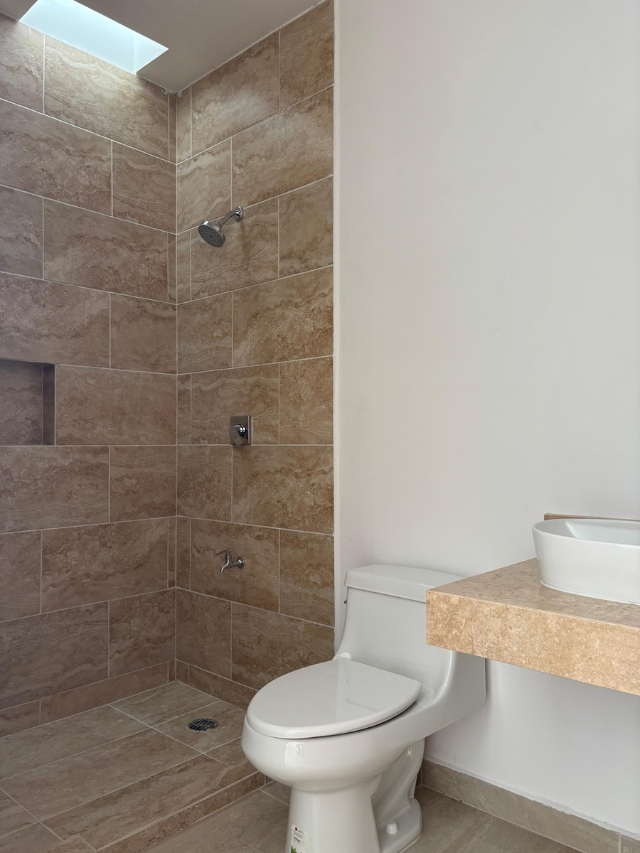 2 recámaras secundarias, cada una con baño completo y área de clóset (sin carpintería)