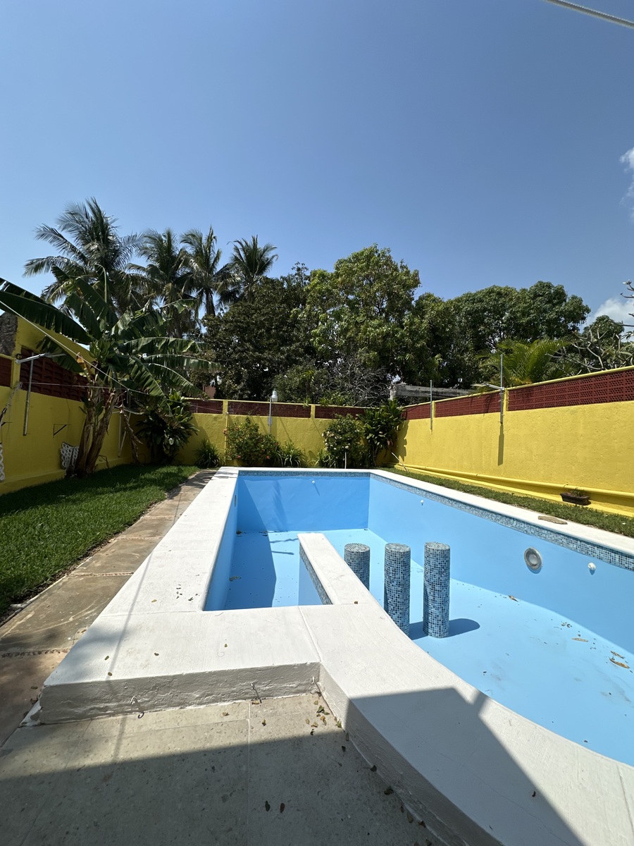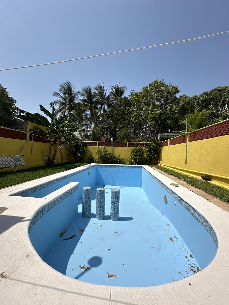 Piscina con filtro y bomba sumergible, con pozo de absorción y pozo de desagüe Cisterna