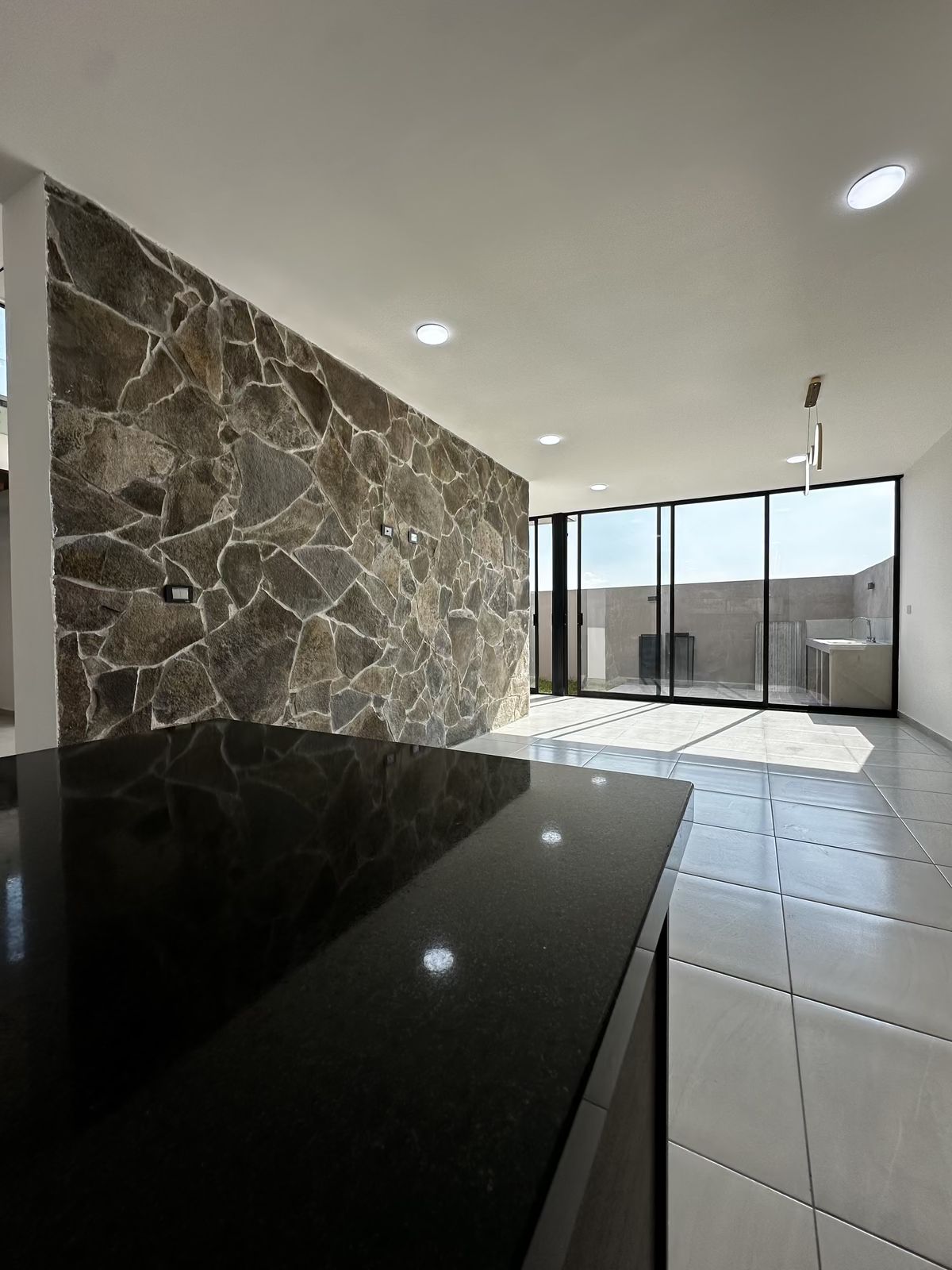 ✅ Doble altura y lámparas modernas, creando un ambiente elegante
