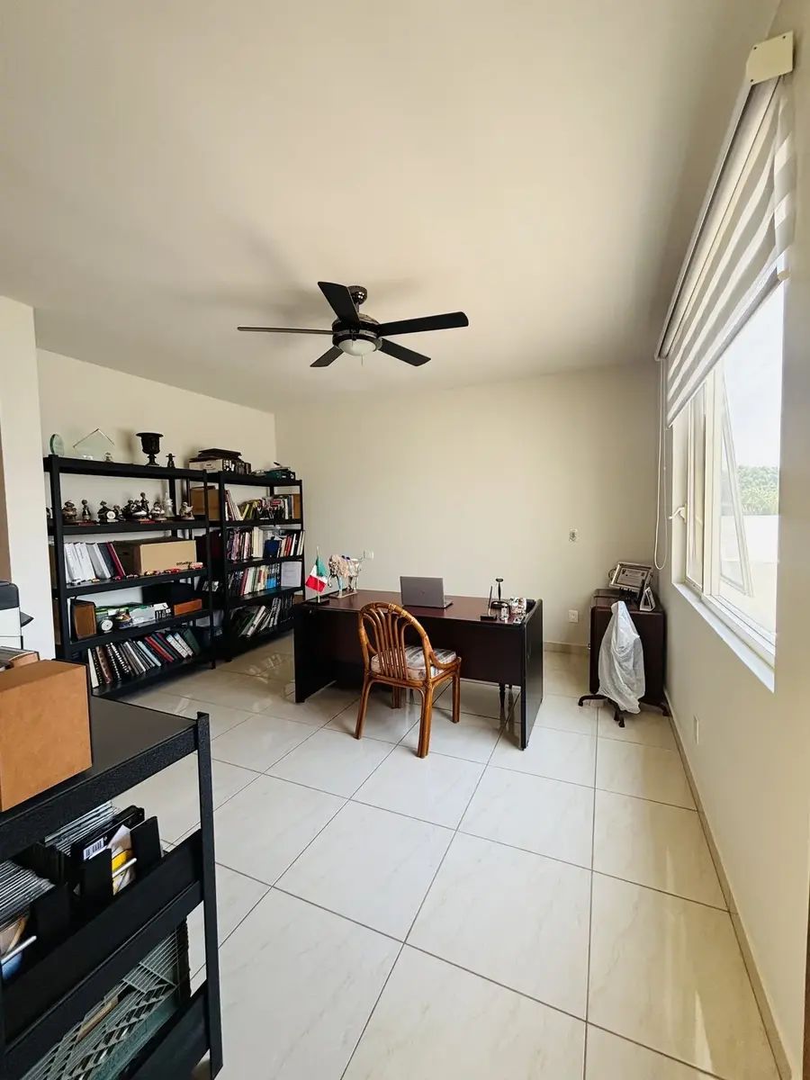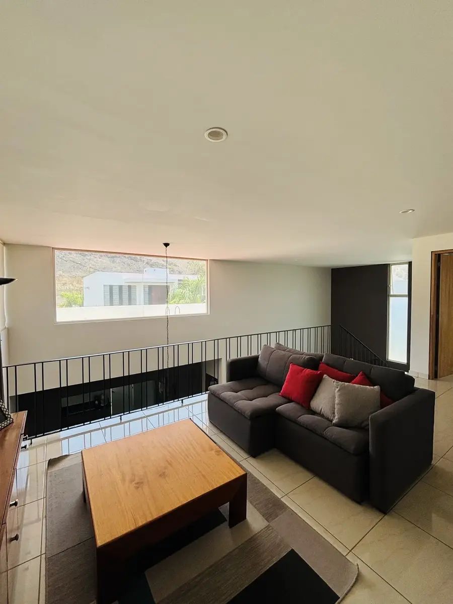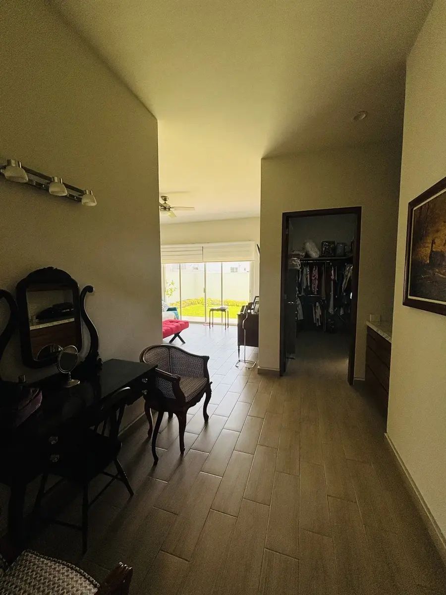 Esta residencia cuenta con 3 habitaciones, cada una con baño completo, en planta alta, se encuentran dos de las habitaciones secundarias cada una con su closet y su baño, una de ellas tiene una terraza con vista a la montaña, tiene un espacio mu amplio para área de TV, con closet de blancos.