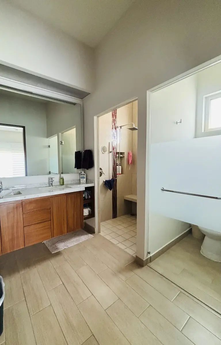 This residence has 3 bedrooms, each with a full bathroom. On the upper floor, there are two of the secondary bedrooms, each with its closet and bathroom; one of them has a terrace with a view of the mountain. There is a very spacious area for a TV room, with a linen closet.