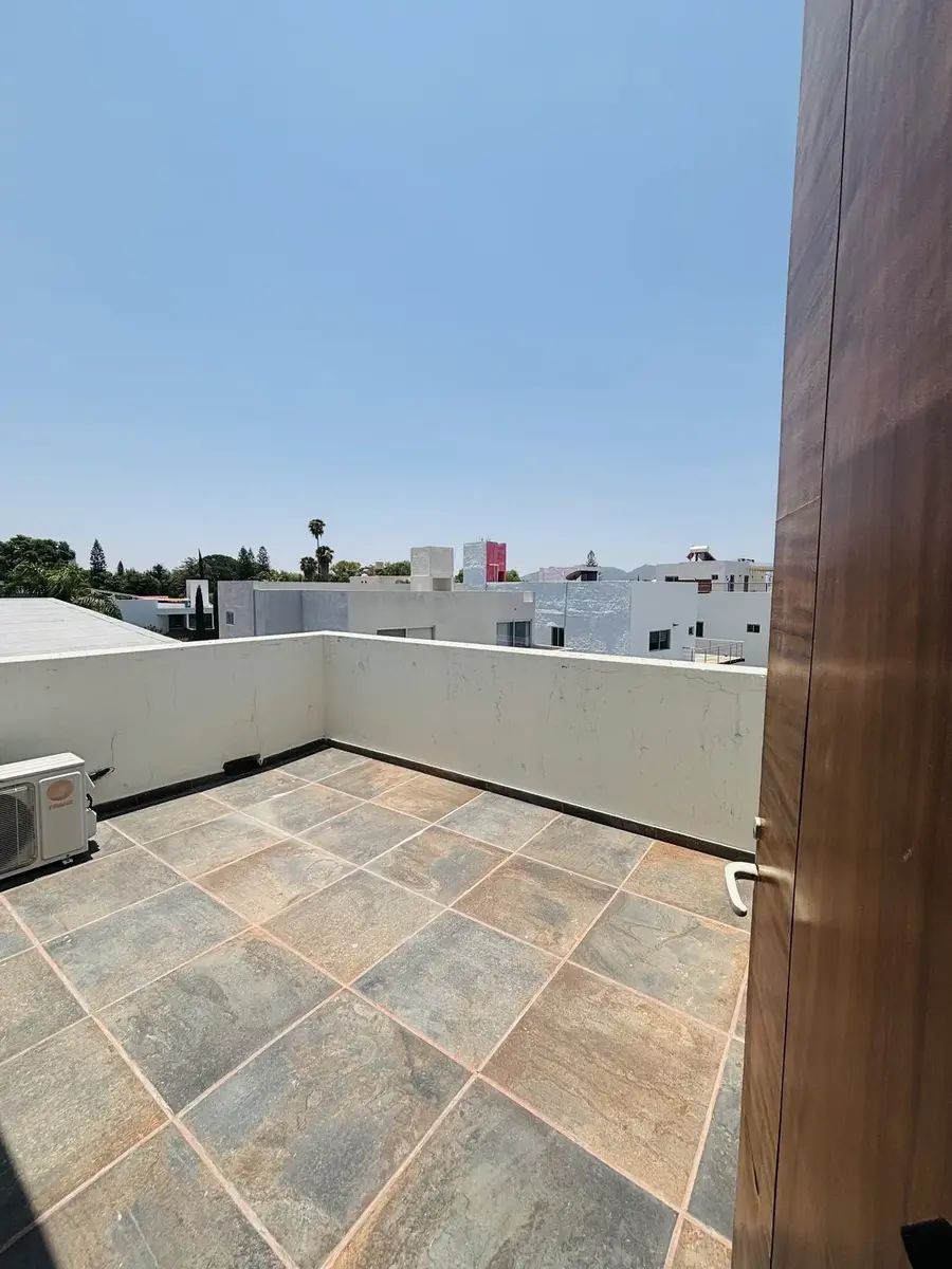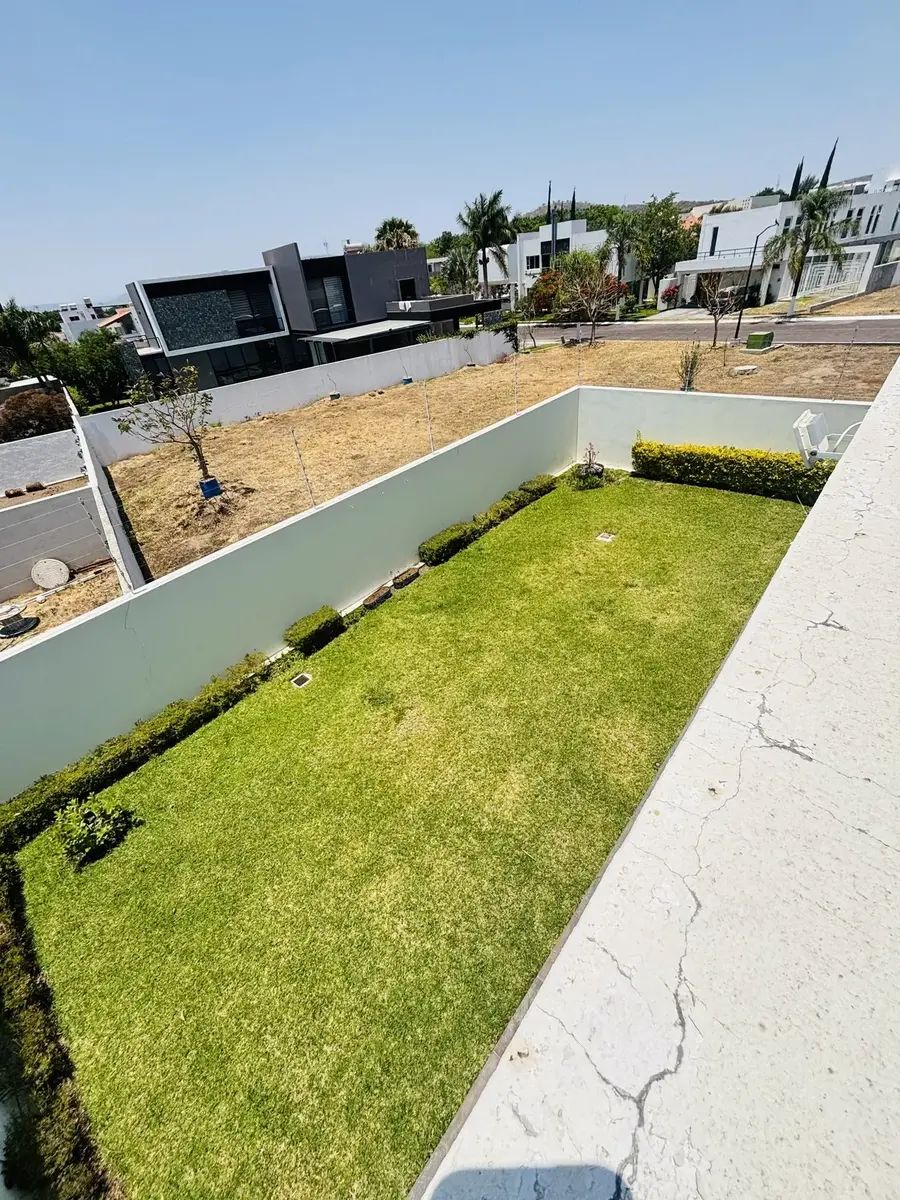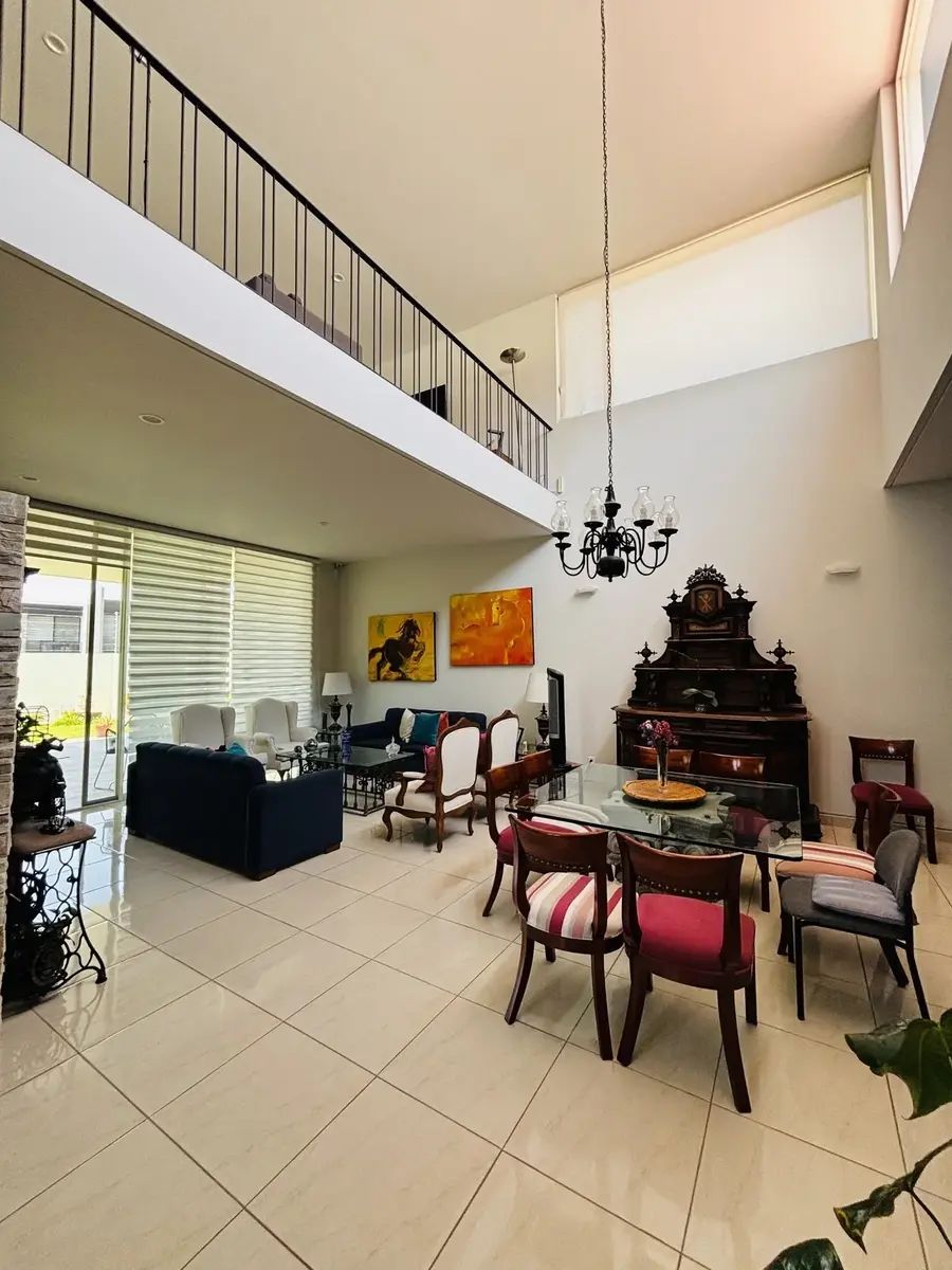 En planta baja de encuentra la habitación principal esta cuenta con baño completo y vestidor, aire acondicionado, hermosa y relajante vista al jardín, espaciosos sala-comedor a doble altura, moderna cocina integral amplia equipada y con barra de granito, con muy buena iluminación natural y eléctrica, también tiene una cómoda terraza para disfrutar con tu familia y amigos del bello jardín, tiene cuarto de lavado con patio de servicio, estacionamiento para 4 autos techado y dos mas.
