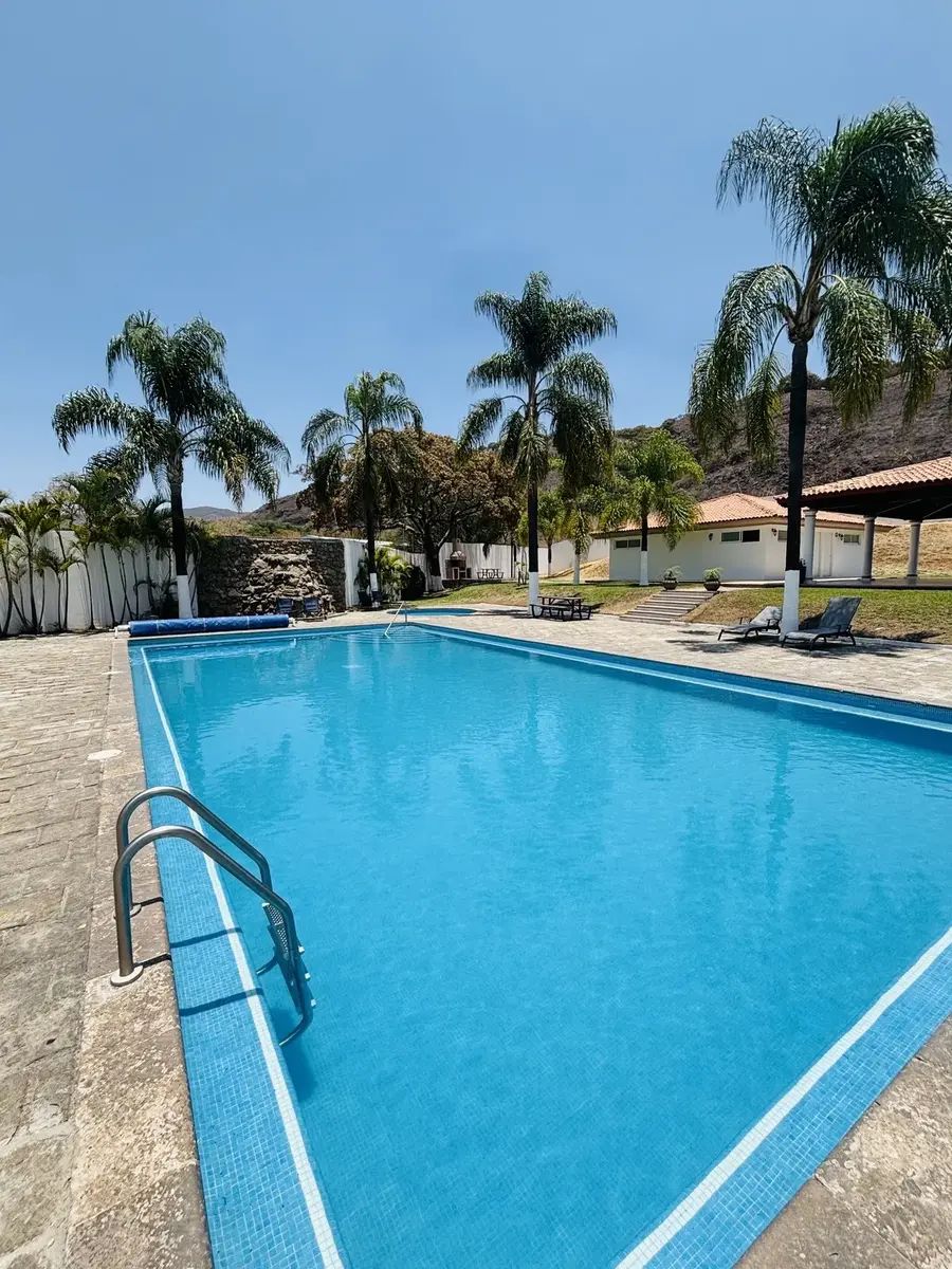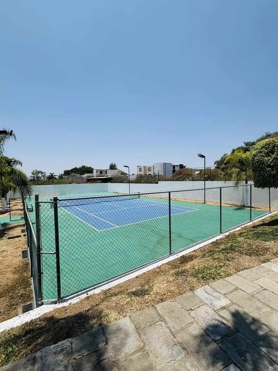 Cuenta con casa club para eventos de mas de 100 personas, alberca y cancha de tenis., colinda con cerro.