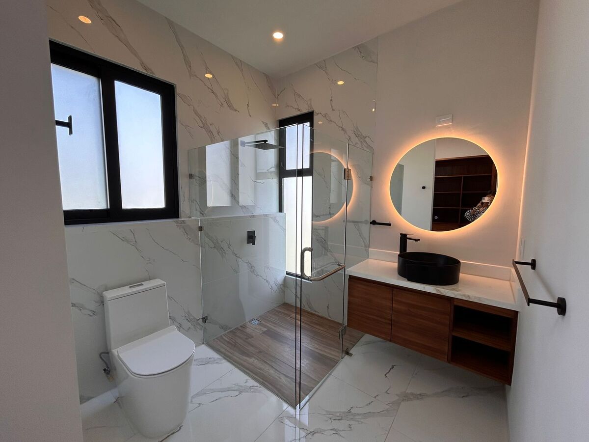 3 amplias recámaras con A/C y acabados modernos, 1 estudio perfecto para home office o sala de TV. 4 baños completos, cocina equipada con excelente distribución y un jardín privado que conecta con una hermosa alberca, ideal para disfrutar del clima y convivencias en familia.